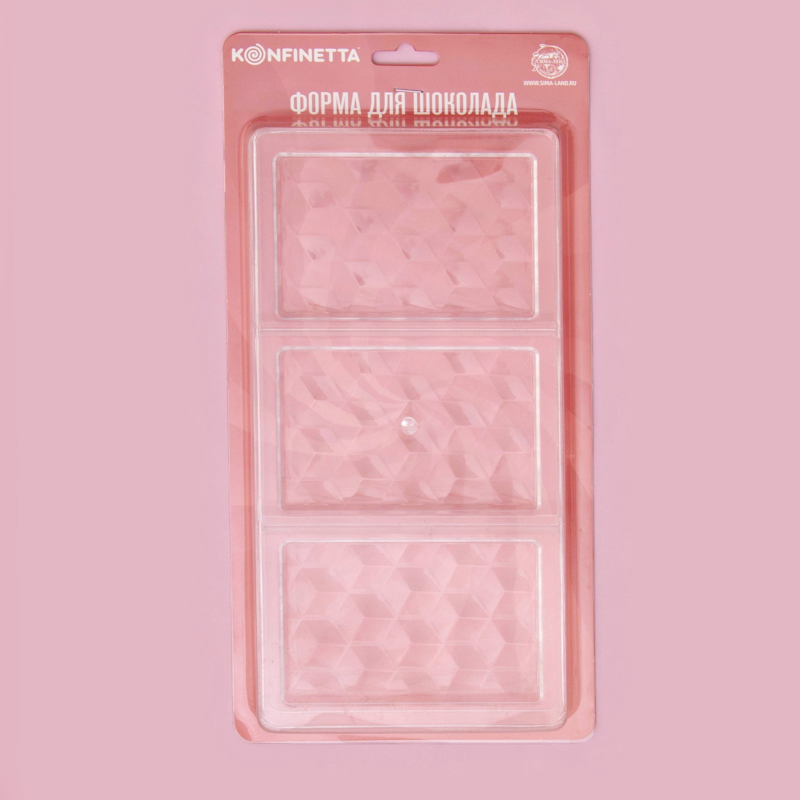 !09 Форма для шоколада «Плитка шоколада», 33×16.5×2.5 см, 3 ячейки 7.5×11.3 см, прозрачная