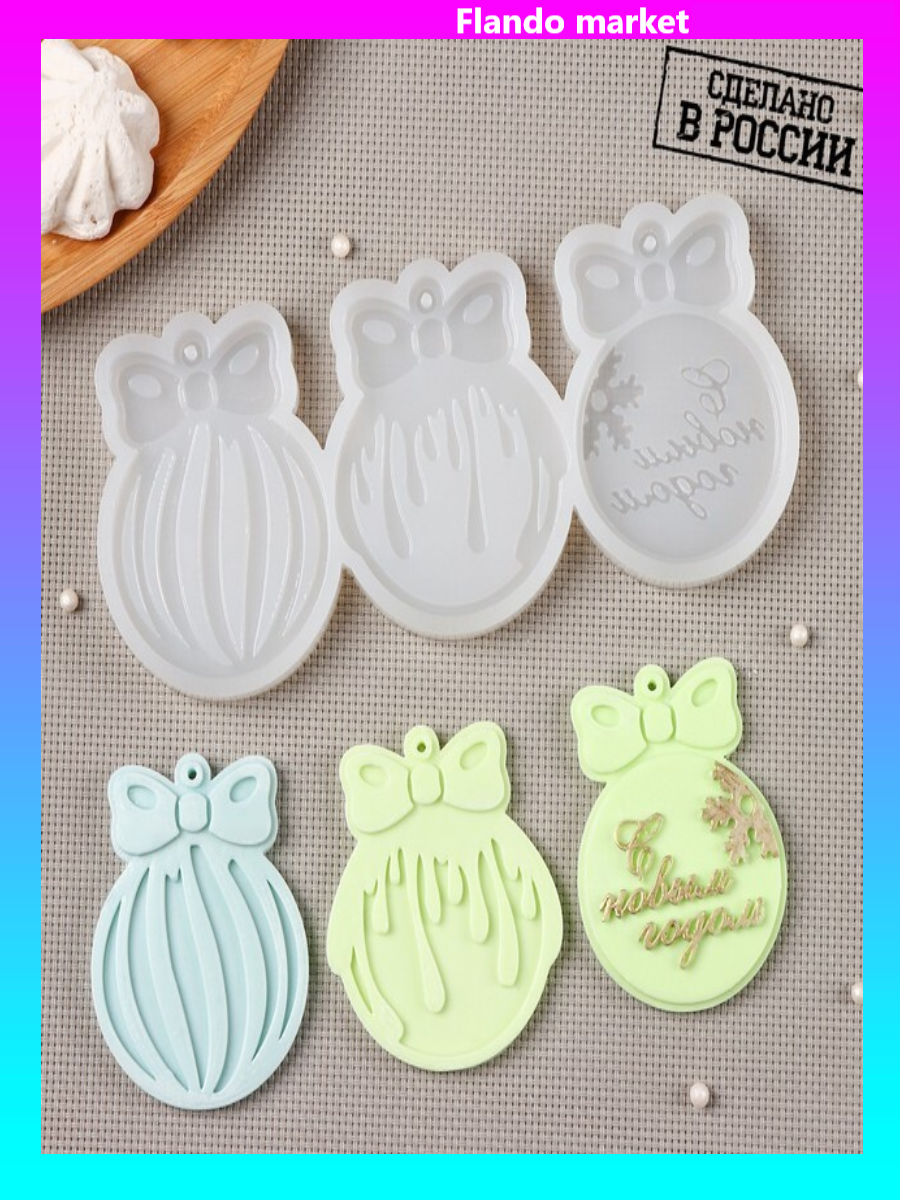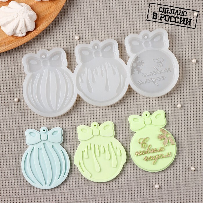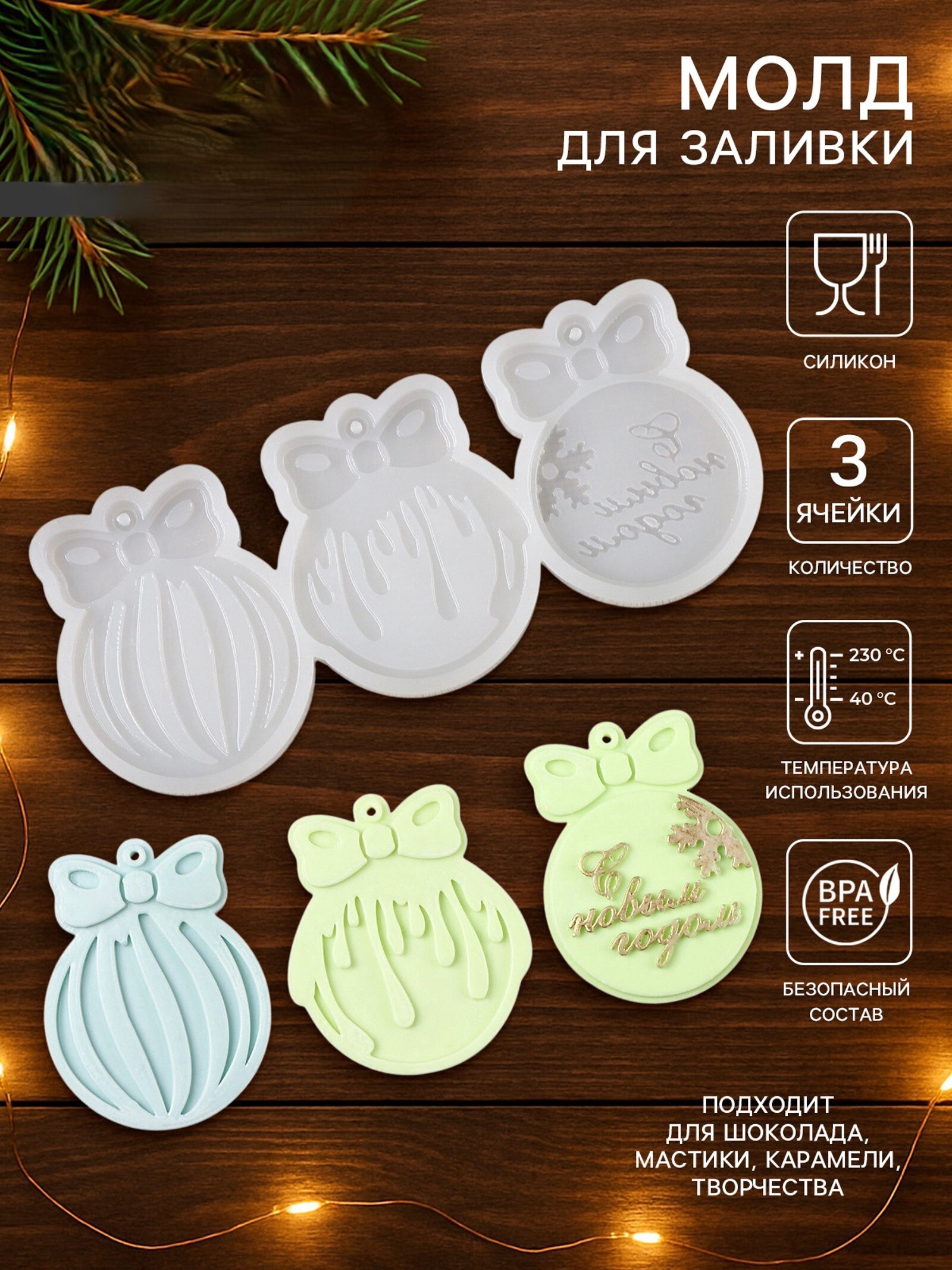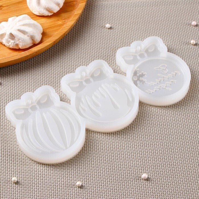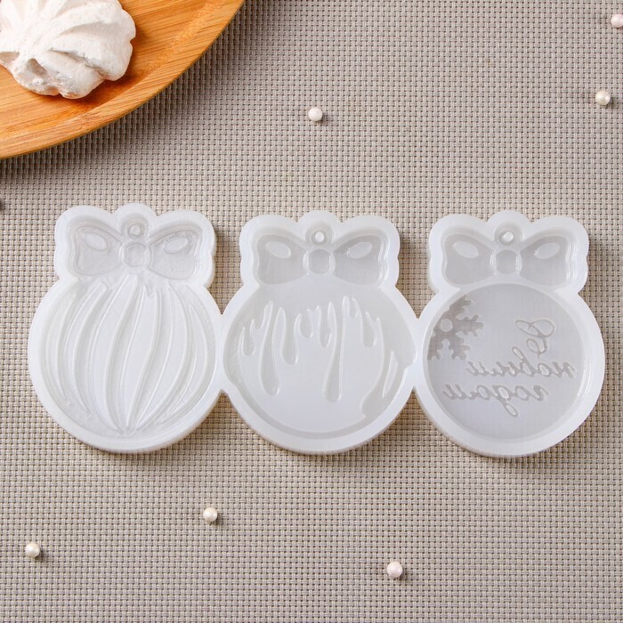 !09 Молд для заливки «Ёлочные игрушки» 20x8,5 см., 3 штуки , силикон, цвет прозрачный