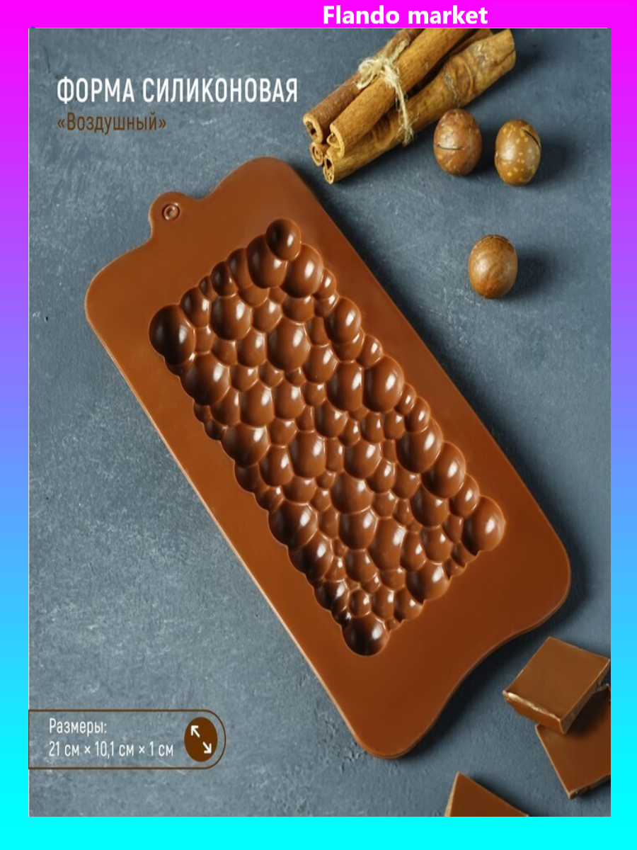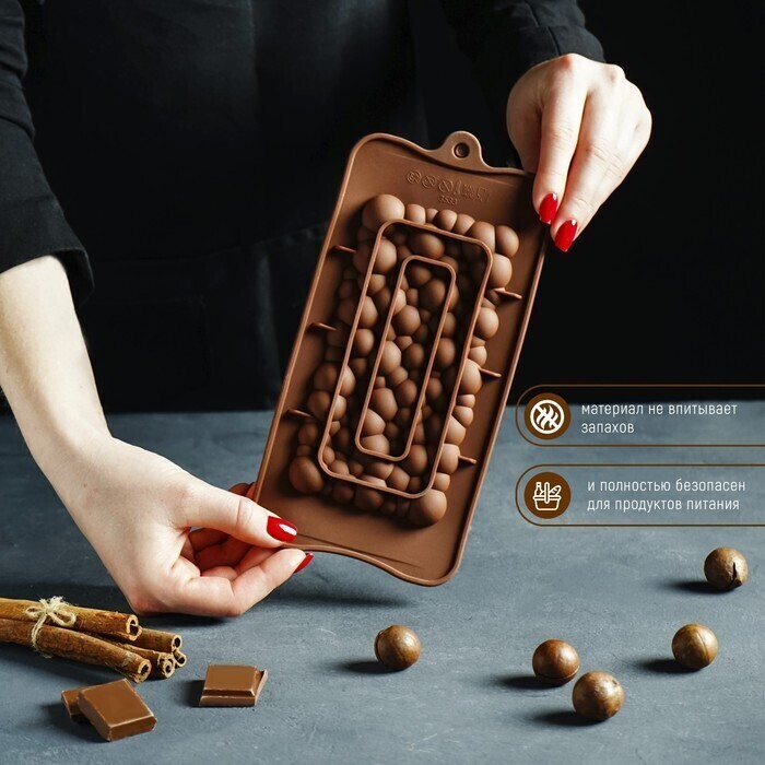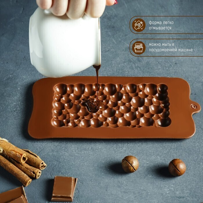 !09 Форма для шоколада силиконовая «Воздушный», 21×10,1×1 см, силикон, ячейка 15,5×8 см, цвет шоколадный