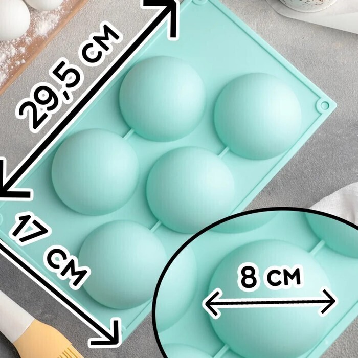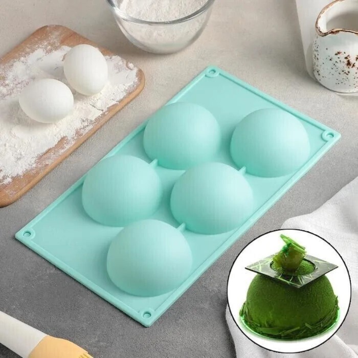!09 Форма для выпечки «Полусфера», силикон, 29,5×17 см, 5 ячеек, d=8 см, цвет МИКС