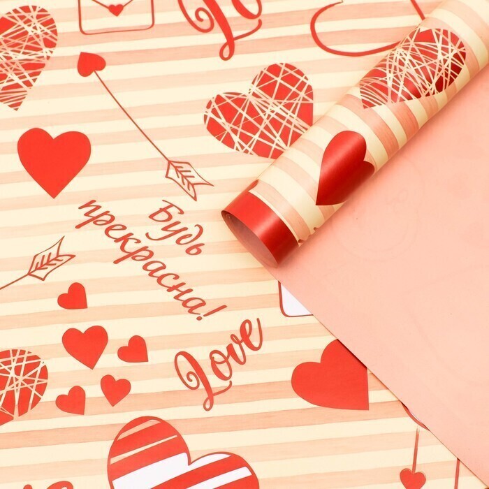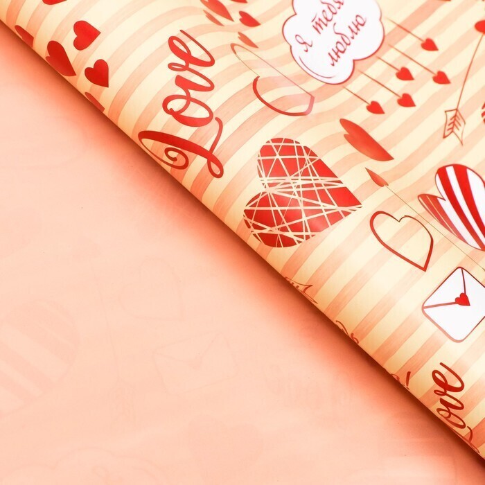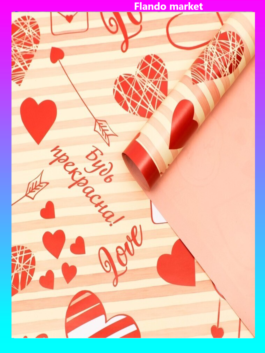 !09 Бумага упаковочная 2 листа глянцевая "Love",двусторонняя, 70 х 100 см