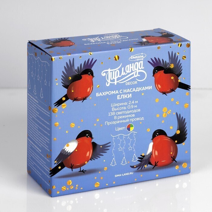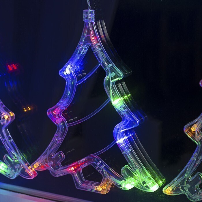 !09 Гирлянда «Бахрома» 2.4 × 0.9 м с насадками «Ёлки», IP20, прозрачная нить, 138 LED, свечение мульти, 8 режимов, 220 В