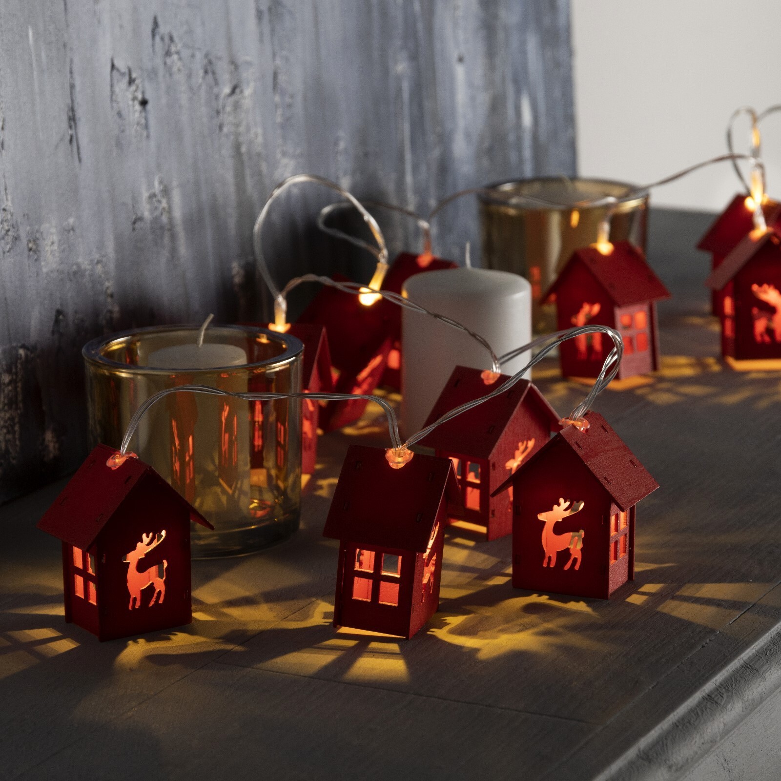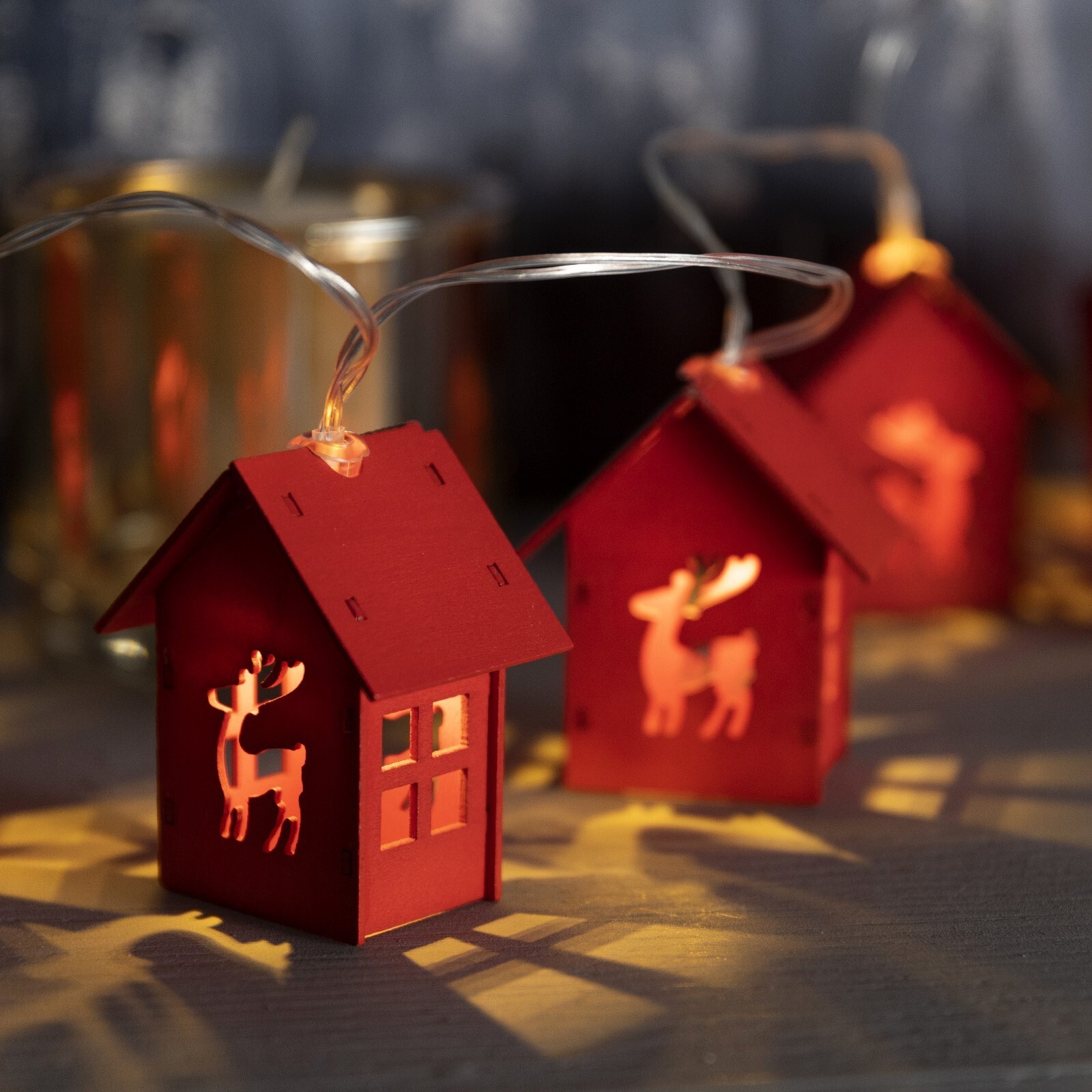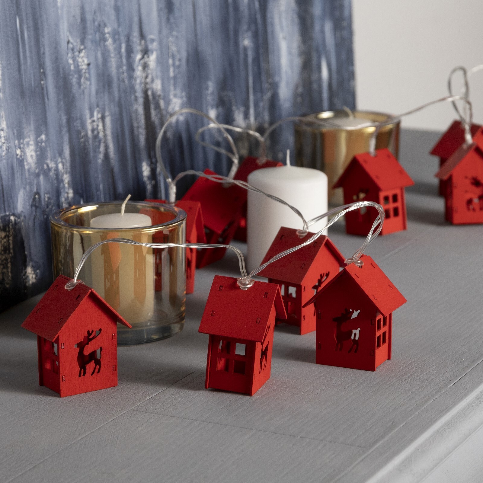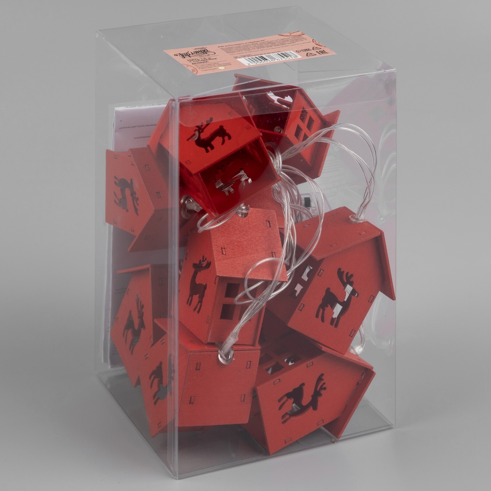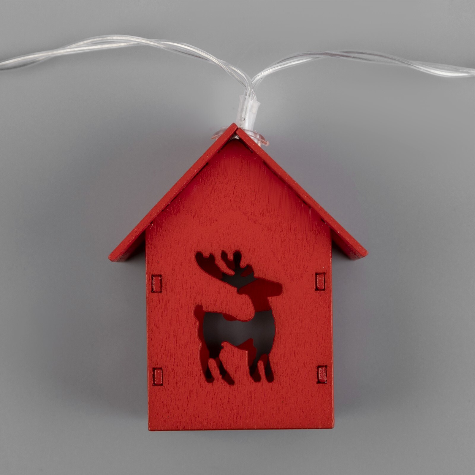 !09 Гирлянда «Нить» 1.5 м с насадками «Дом красный», IP20, прозрачная нить, 10 LED, свечение красное, AAх3