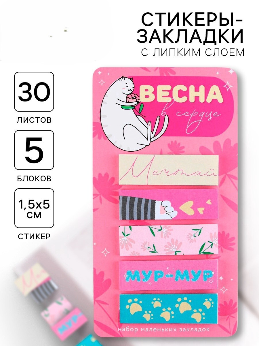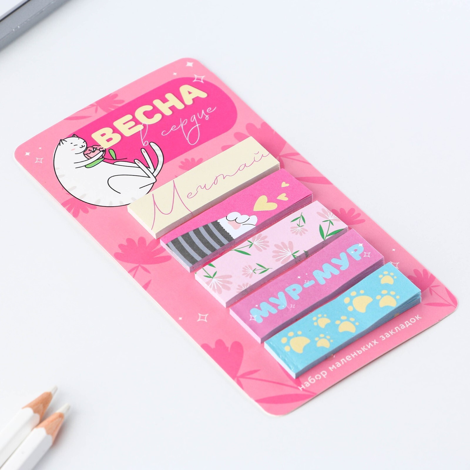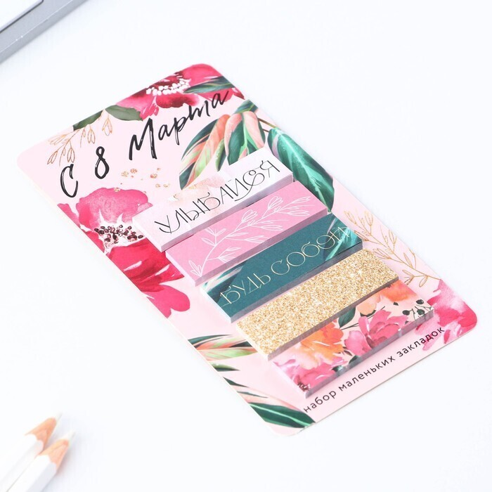 !09 Комплект стикеры-закладки, на подложке дизайн микс: "Сказочно прекрасна" 5 шт, 30 л/шт.+ «С 8 Марта», 5 шт., 30 л/шт. + «Весна в сердце», 5 шт., 30 л/шт.