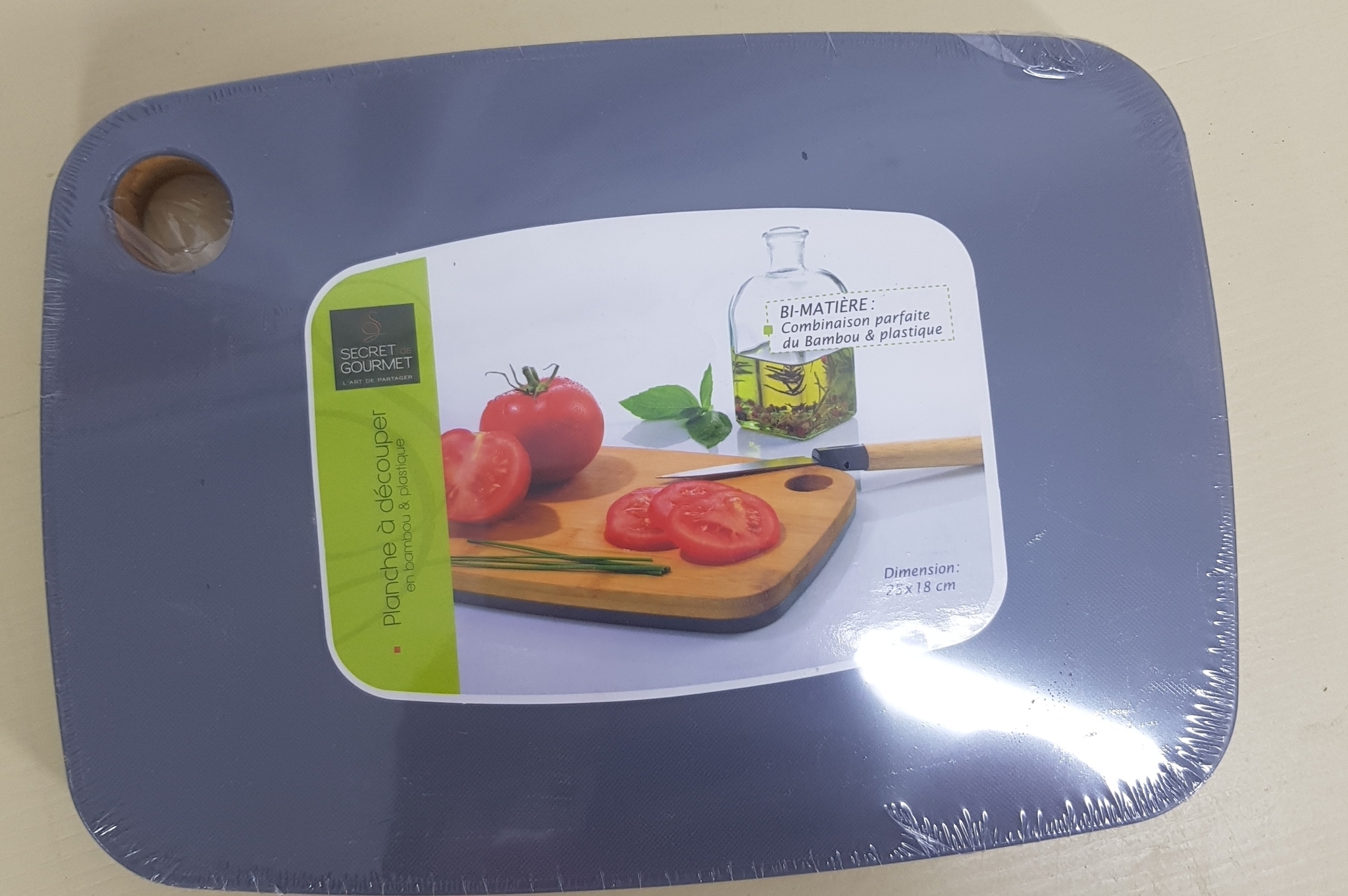 !09 Доска разделочная двусторонняя 25x18x2 см. Материал: бамбук,полипропилен. Цвет: зеленый/серый