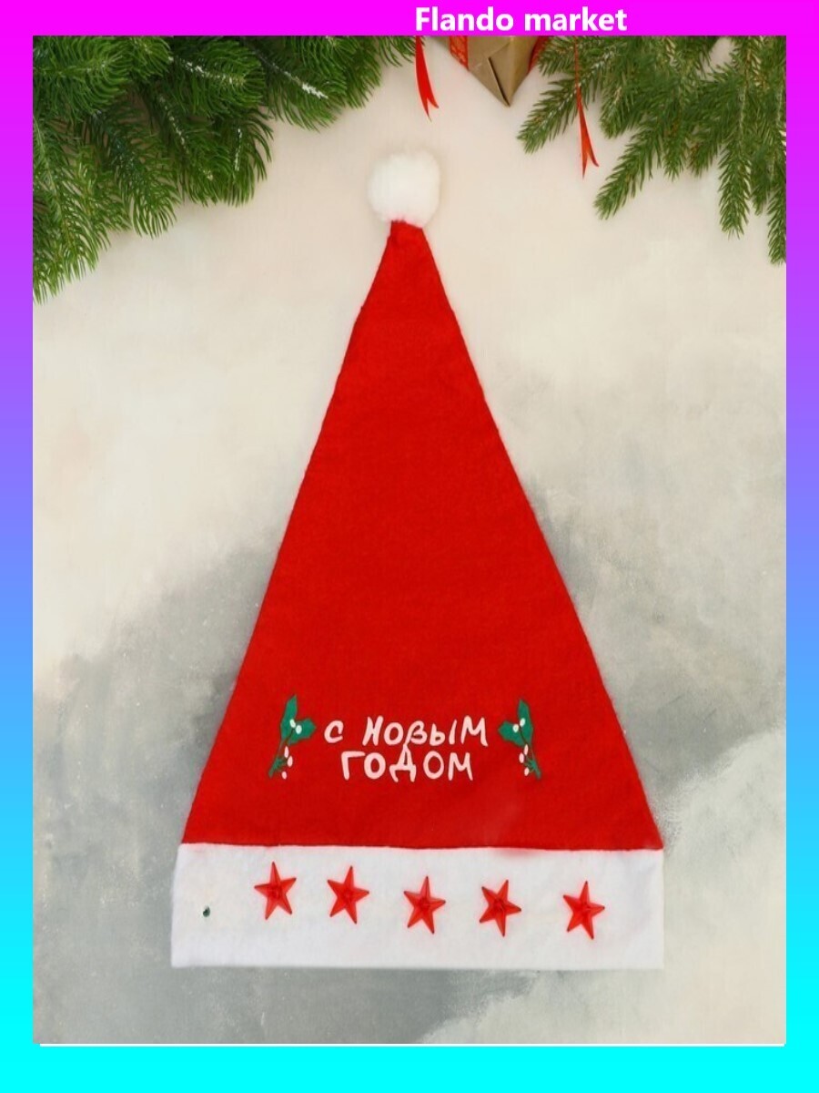 !09 Колпак новогодний 2 штуки: Колпак "С новым годом" звёзды свет, 28х40 см, красный + Колпак «Классика» 37×27 см, красный