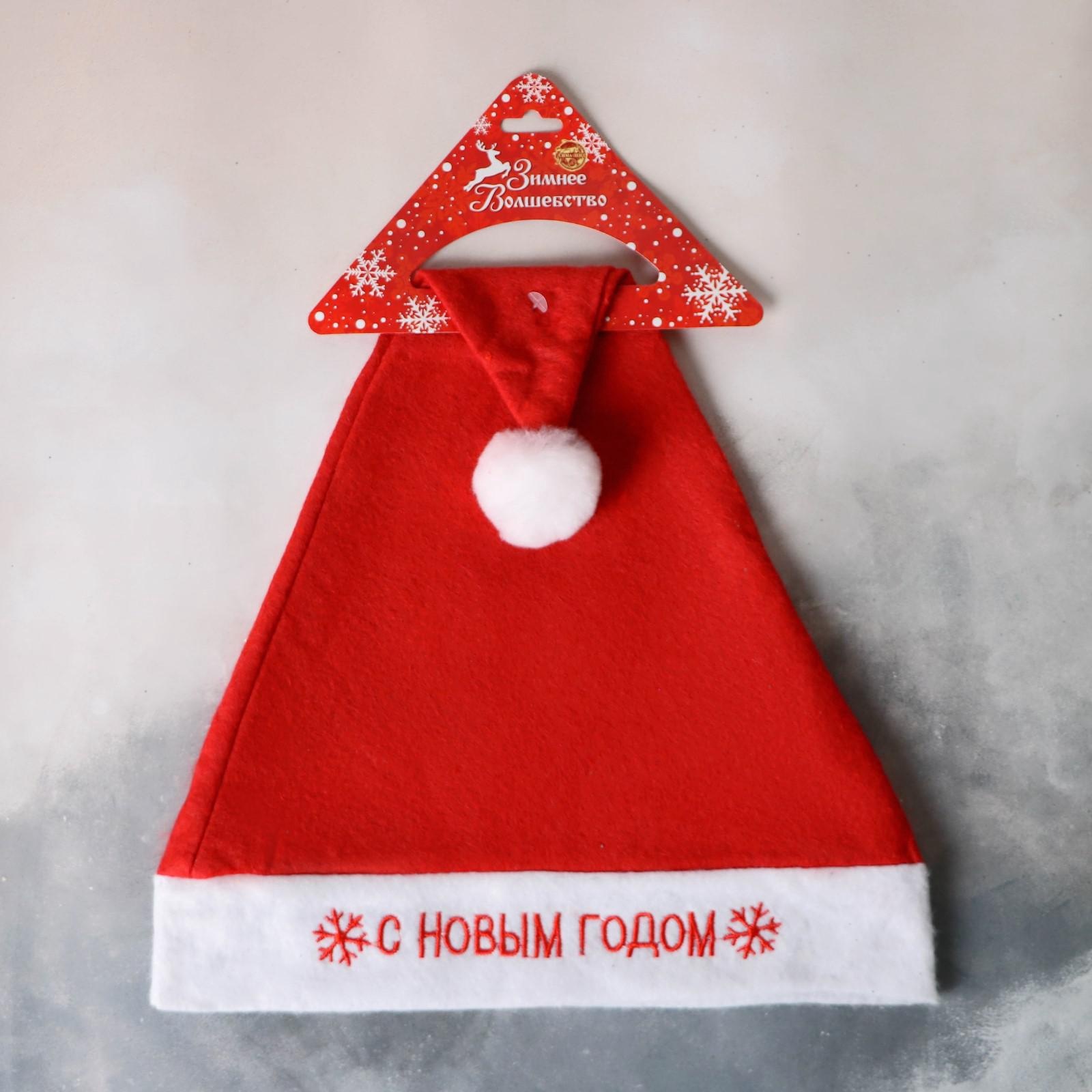 !09 Колпак новогодний 2 штуки "С Новым годом" снежинка кайма, 27х36 см, красный