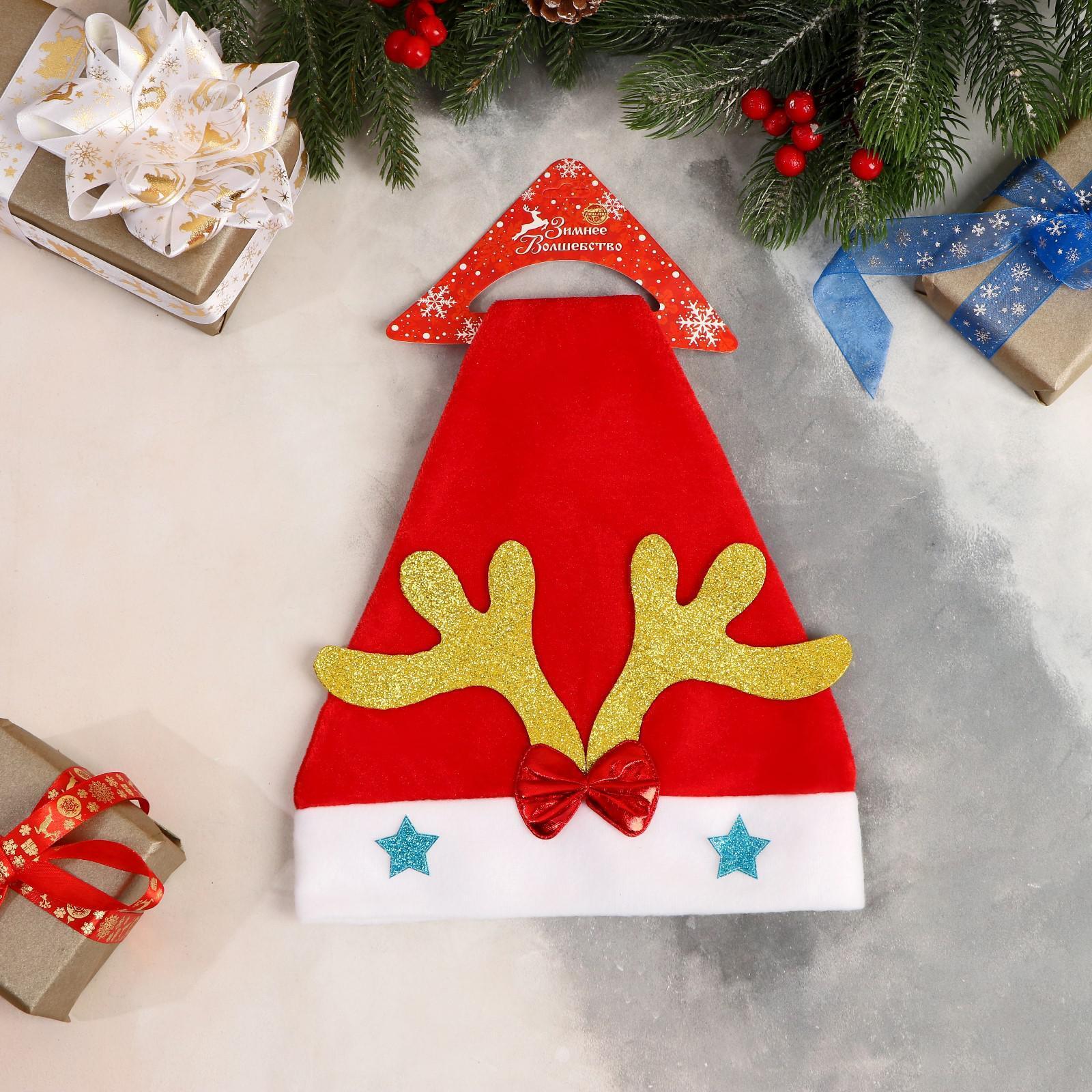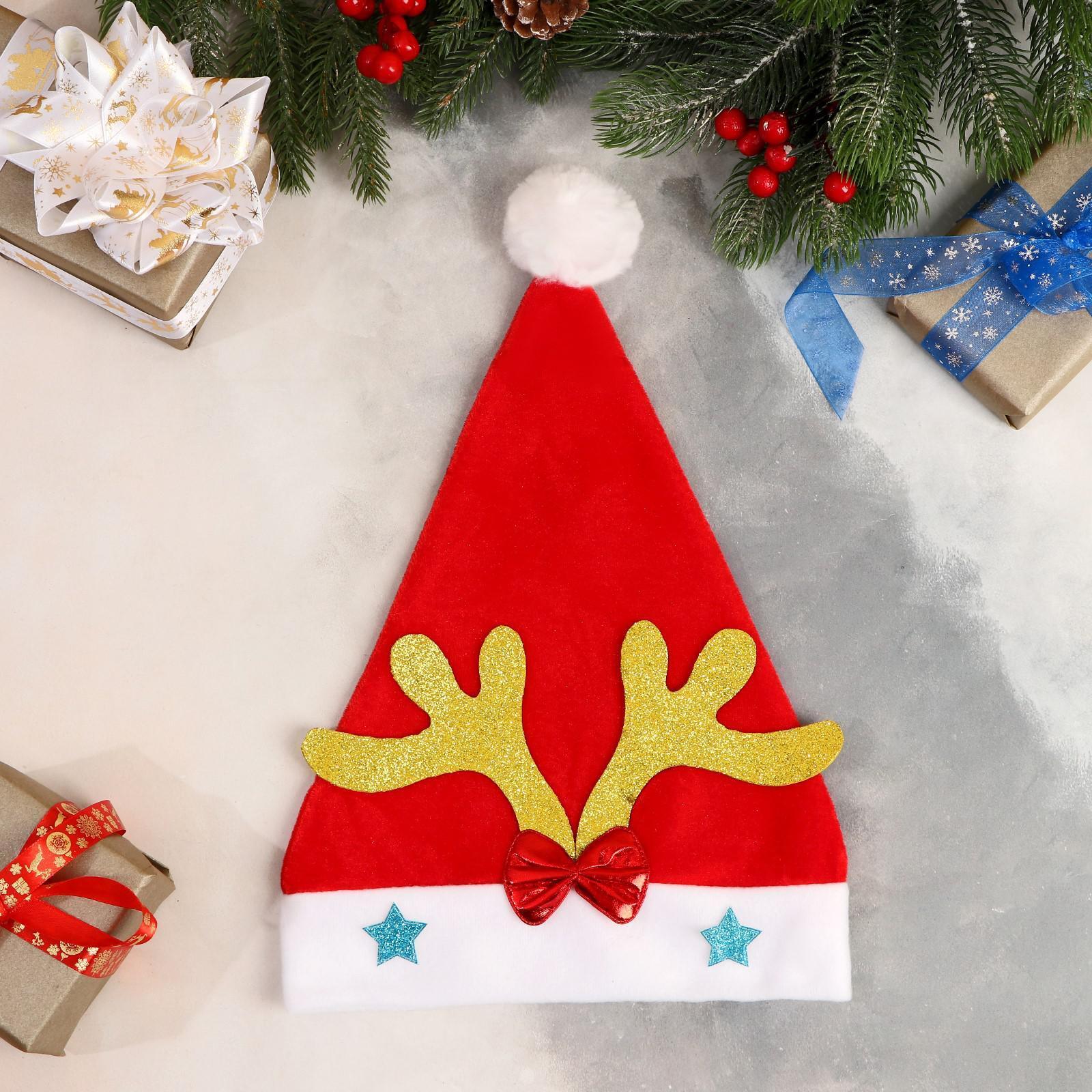 !09 Колпак новогодний "Оленьи рожки" бантик и листики 25х37 см