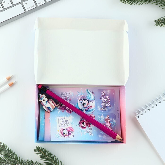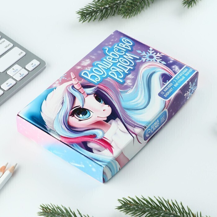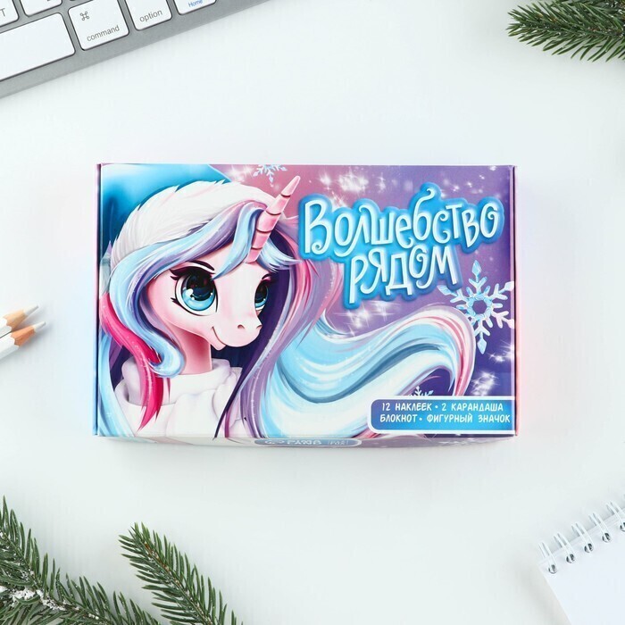 !09 Подарочный набор «Волшебство рядом»: блокнот, карандаши, наклейки и значок