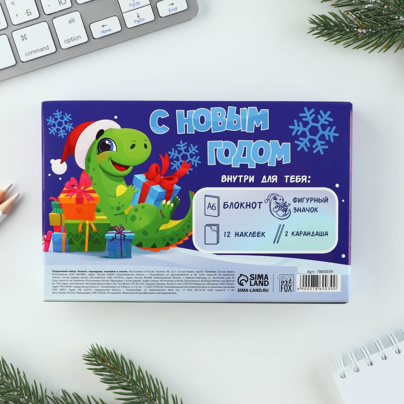 !09 Комплект из 2-х наборов - Подарочный набор новогодний, блокнот, карандаши простые 2 шт., наклейки, значок «Волшебный набор»
