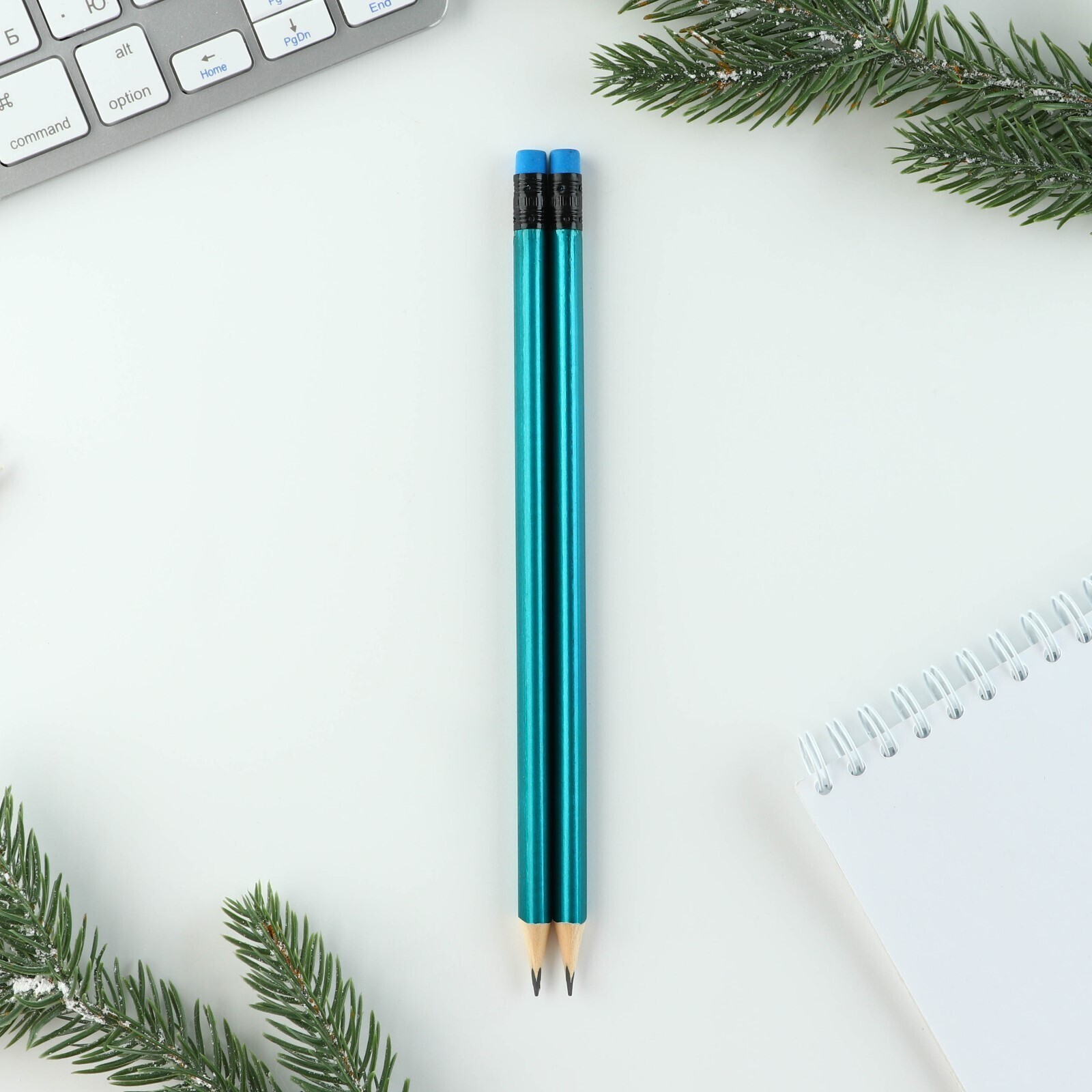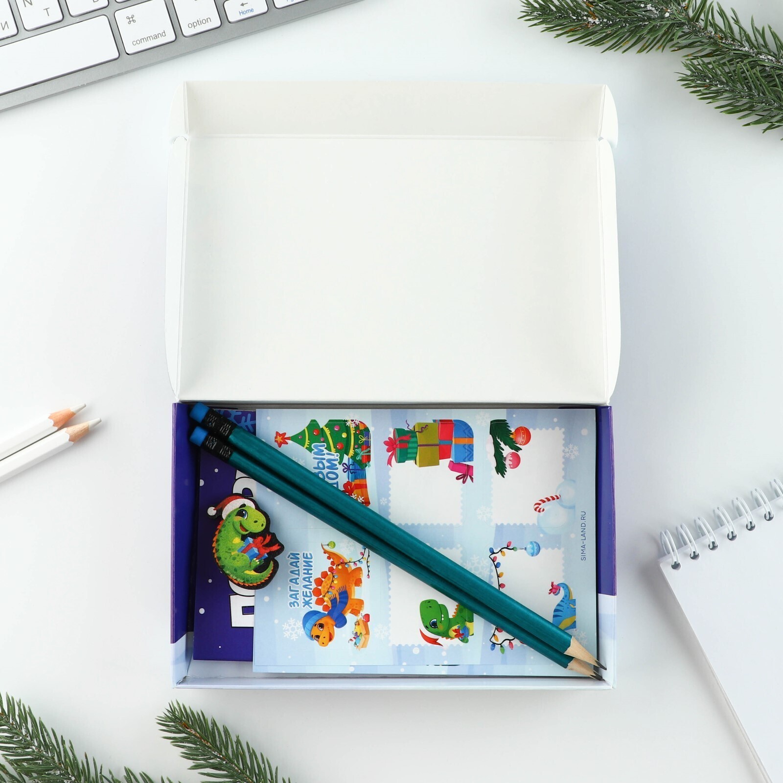 !09 Подарочный набор новогодний, блокнот, карандаши простые 2 шт., наклейки, значок «Волшебный набор»
