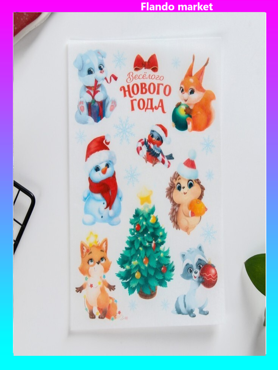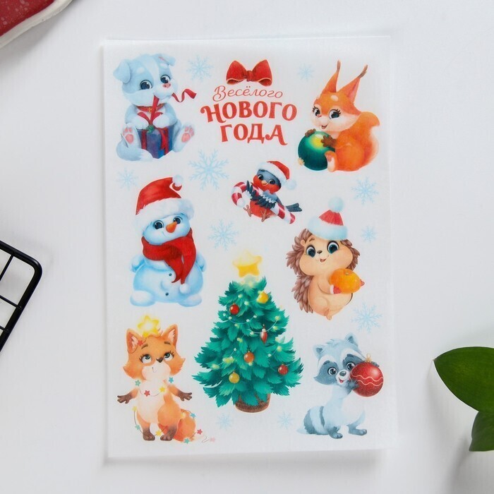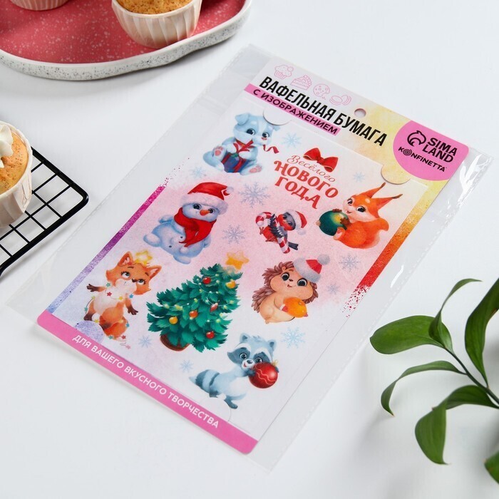 !09 Комплект из 3-х штук - Съедобные цветные картинки на вафельной бумаге «Веселого нового года», 1 лист А5