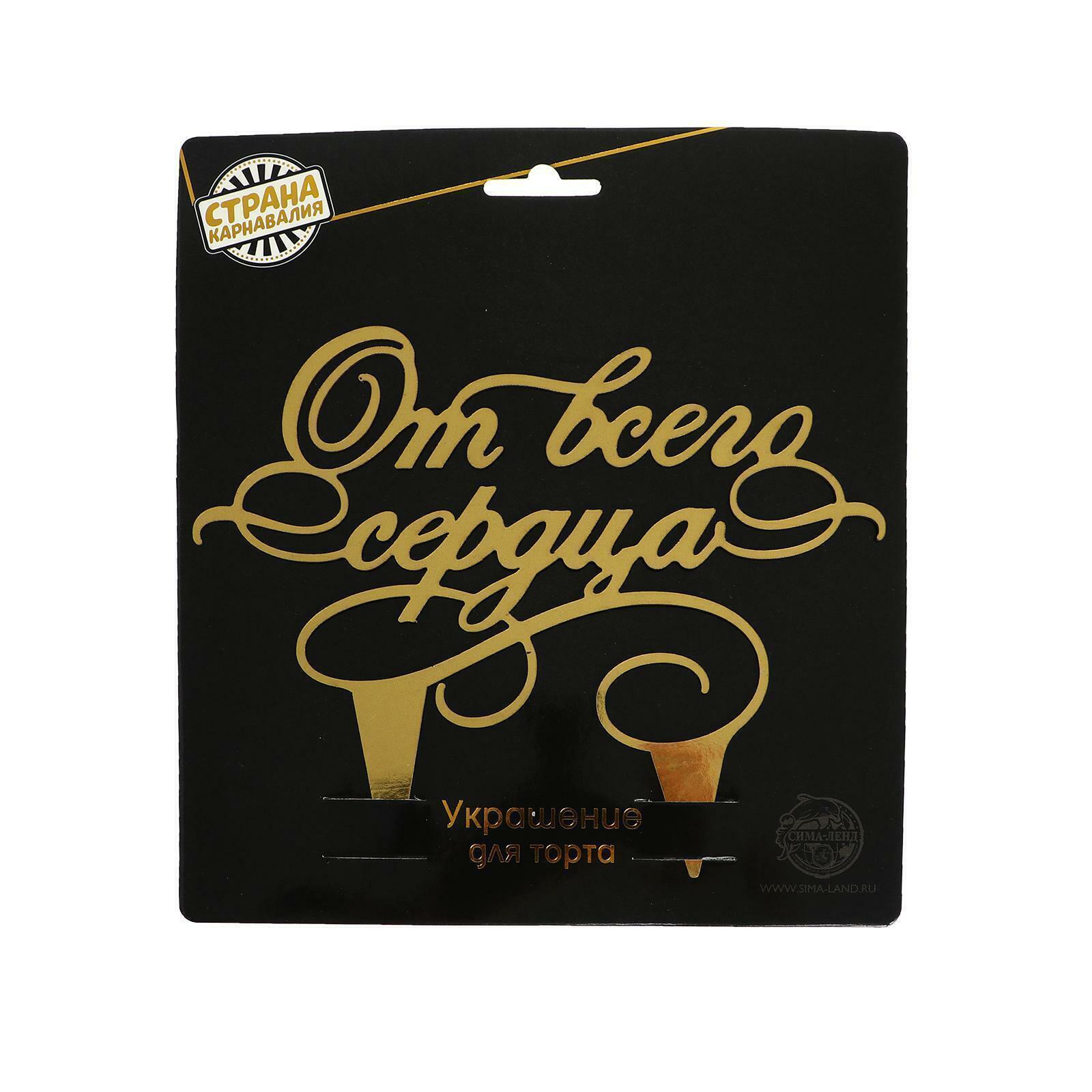 !09 Топпер в торт «От всего сердца» 1 шт.