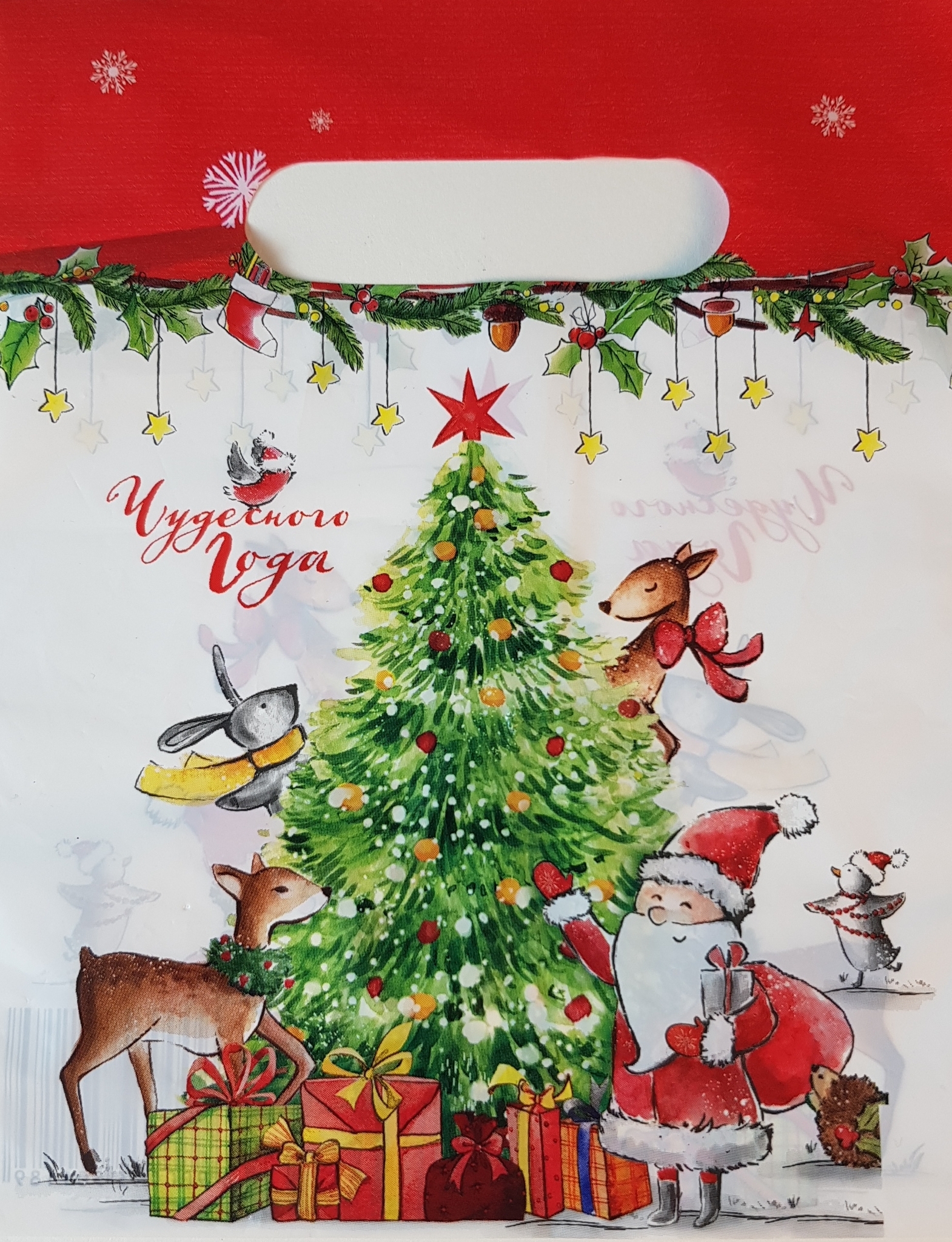 !09 Комплект из 31 штук, 30 мкм., ручка вырубная, полиэтиленовый : Пакет "Дарите счастье", 25 штук 17 х 20 см. + Пакет«Ёлка желаний» 3 штуки 20×30 см. + Пакет "Иголочка", 3 штук 17 х 20 см.