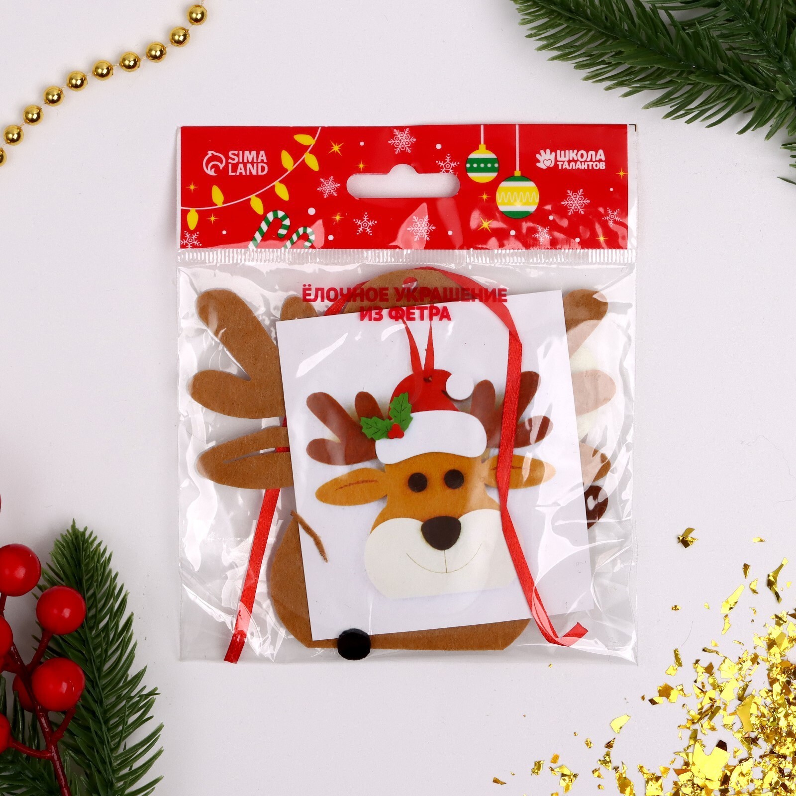 !09 Комплект из 4-х наборов - Ёлочная игрушка из фетра «Новогодний олень», своими руками