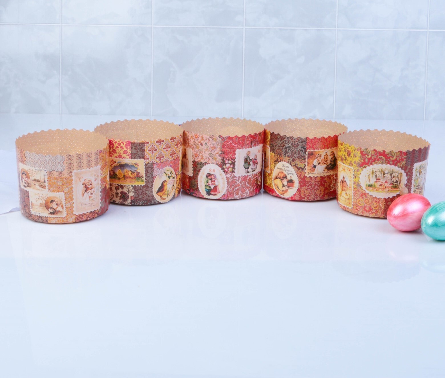 !09 Комплект из 3-х штук - Форма бумажная для кекса, маффинов и кулича "Ретро МИКС" 110 x 85мм,