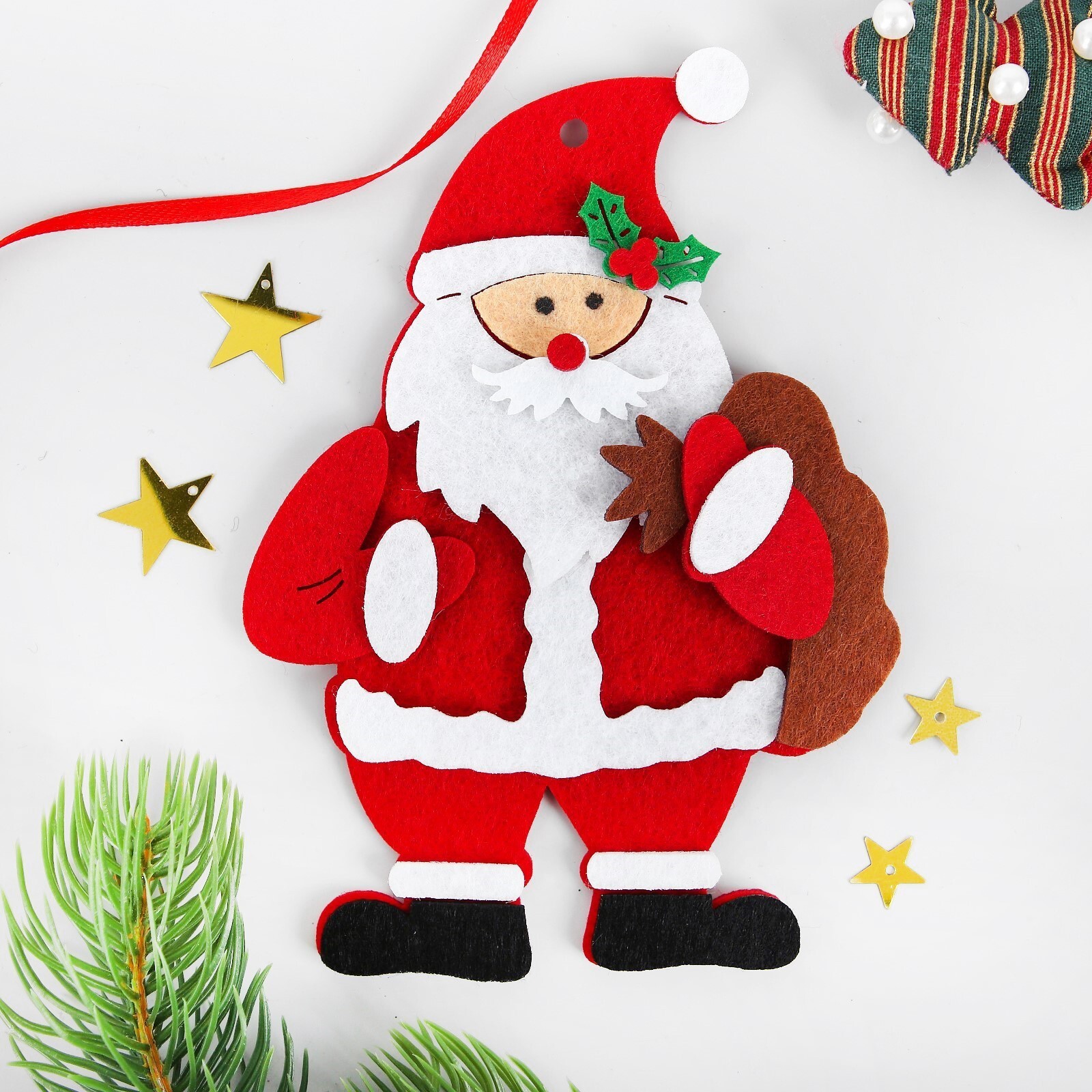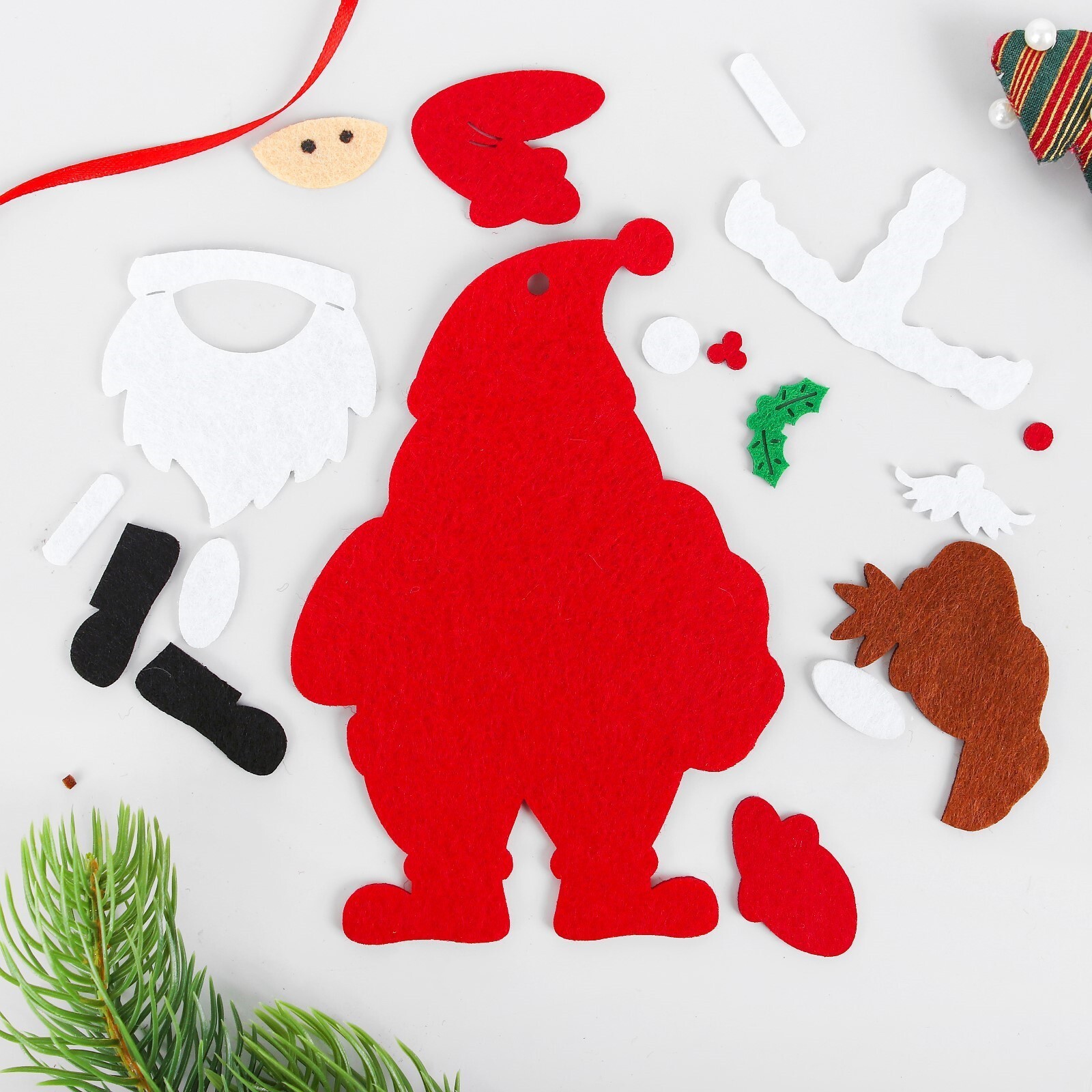 !09 Комплект из 5 наборов -Ёлочная игрушка из фетра «Дед мороз с мешком подарков», набор для творчества, своими руками
