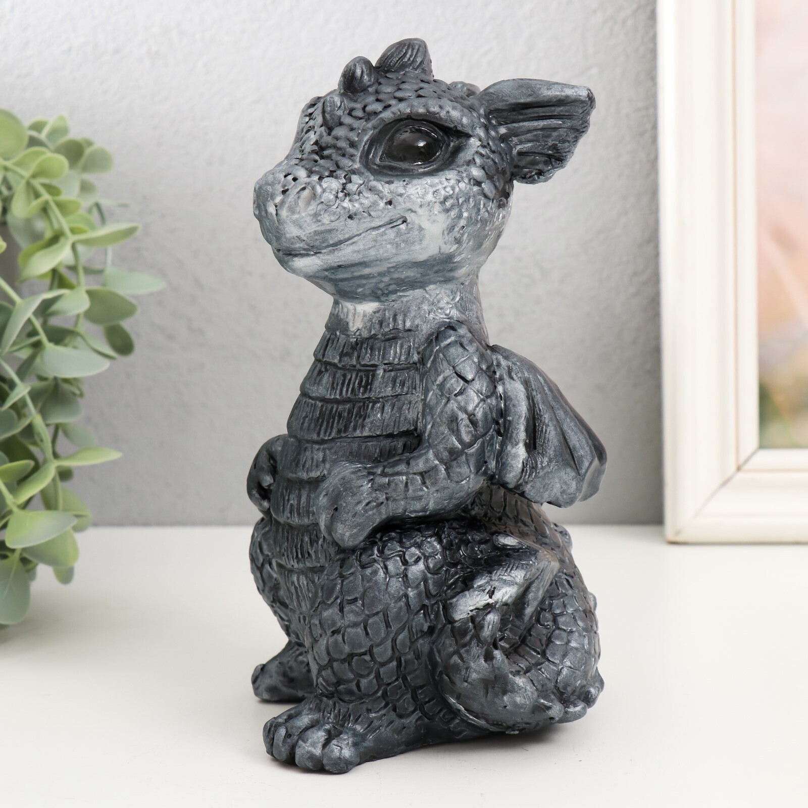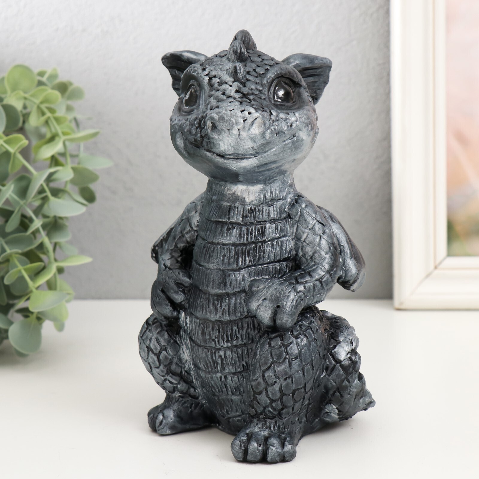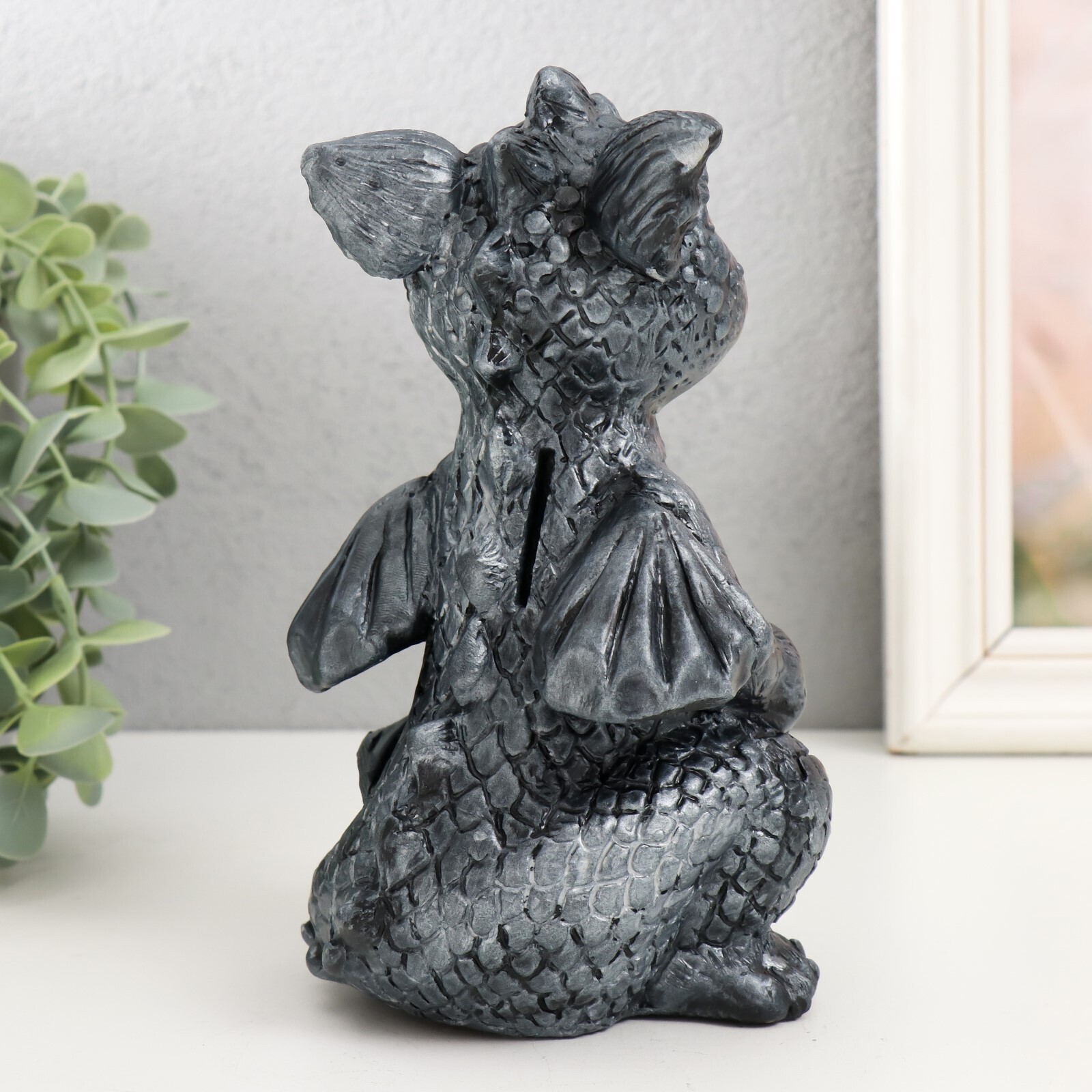 !09 Копилка "Дракончик" 18х10х10 см, цвет черное серебро