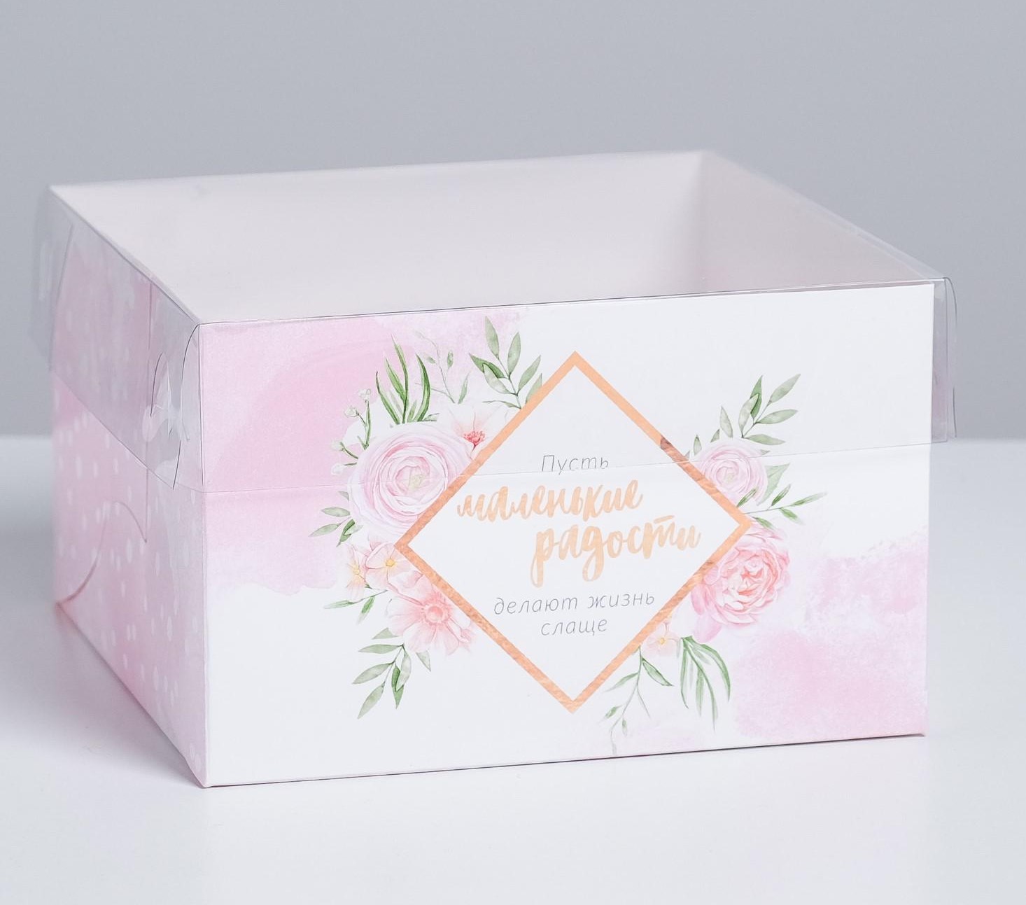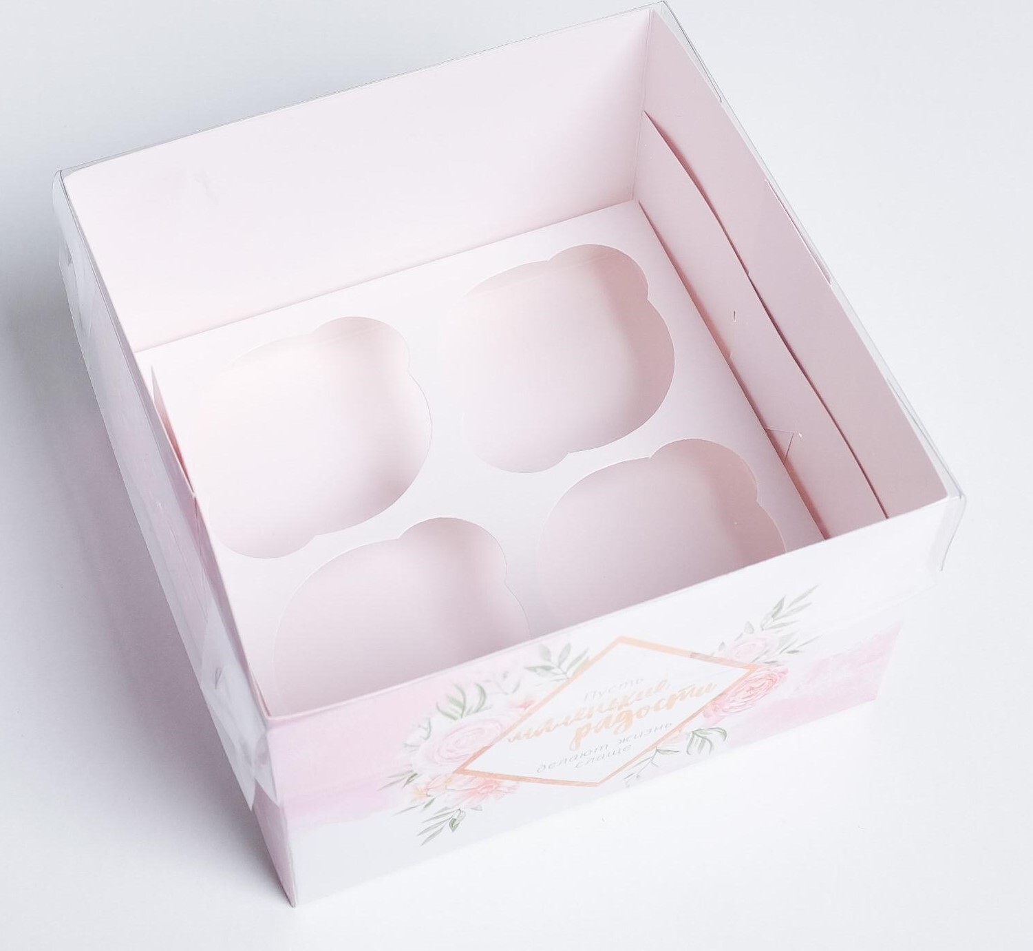!09 Коробка (набор 5 штук) для капкейков, кондитерская упаковка, на 4 ячейки «Маленькие радости», 16 х 16 х 10 см.