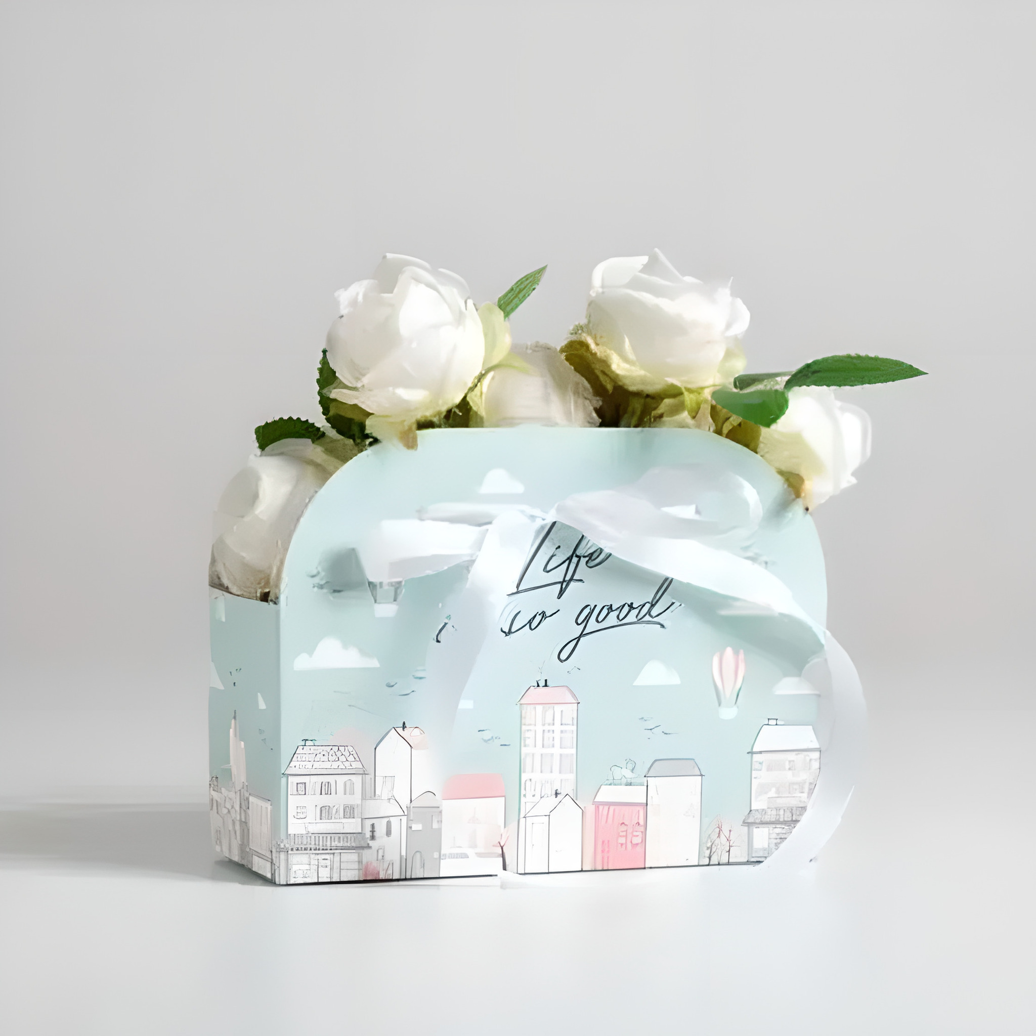!09 Комплект из 5 переносок для цветов 17×13×7 см.:Переноска складная "Life is so good" 2 штуки + Переноска складная "Present" 3 штуки