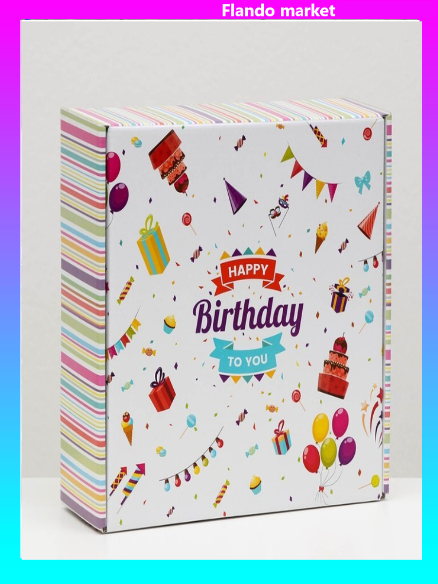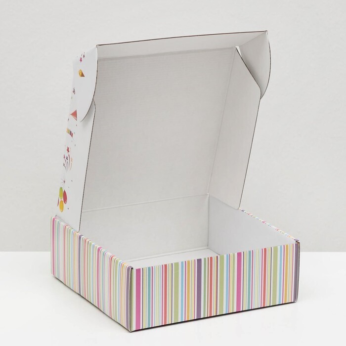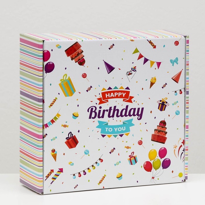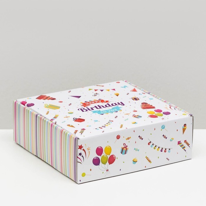 !09 Коробка самосборная "С днём рождения!" 23 х 23 х 8 см.