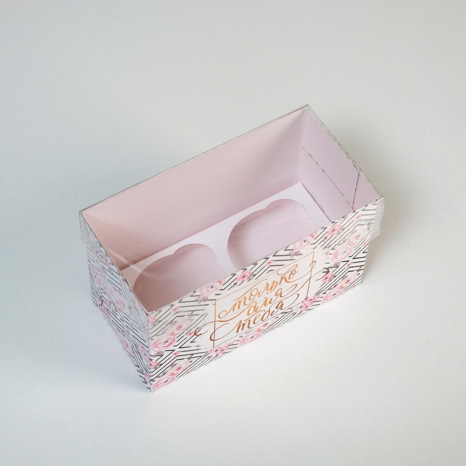 !09 Коробка (набор 3 штуки) на 2 капкейка «Только для тебя», 16 × 8 × 10 см.