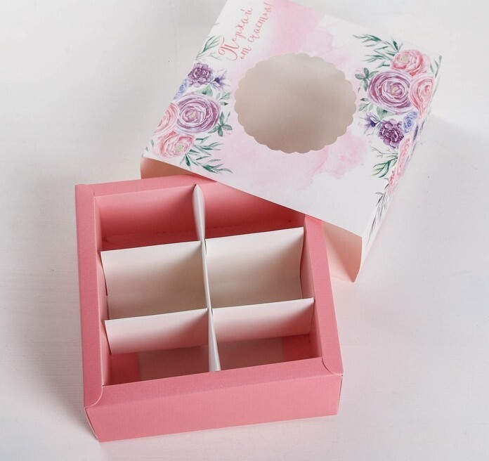 !09 Коробка (набор 5 штук) для сладостей «Порхай от счастья», 13 × 13 × 5 см.
