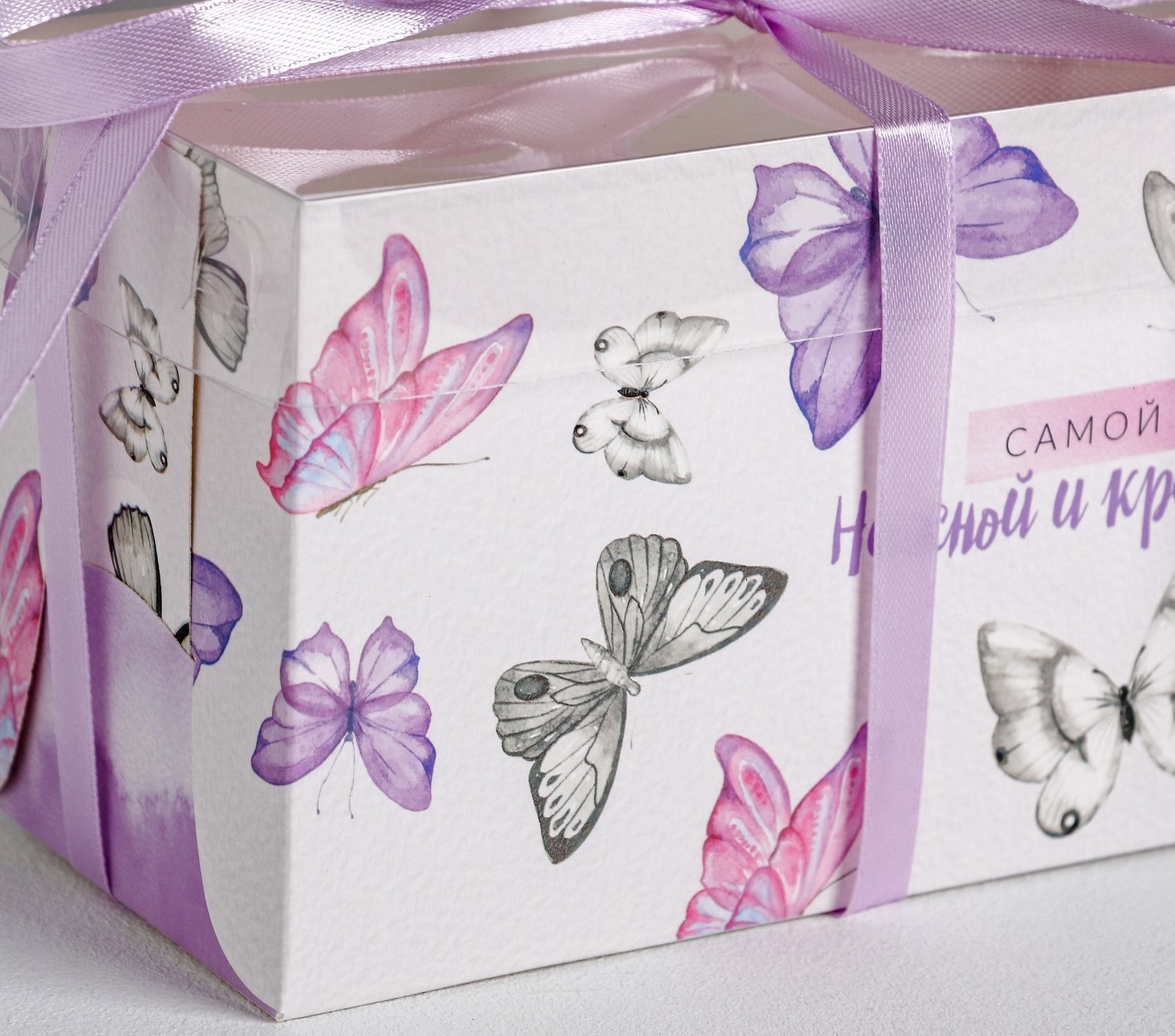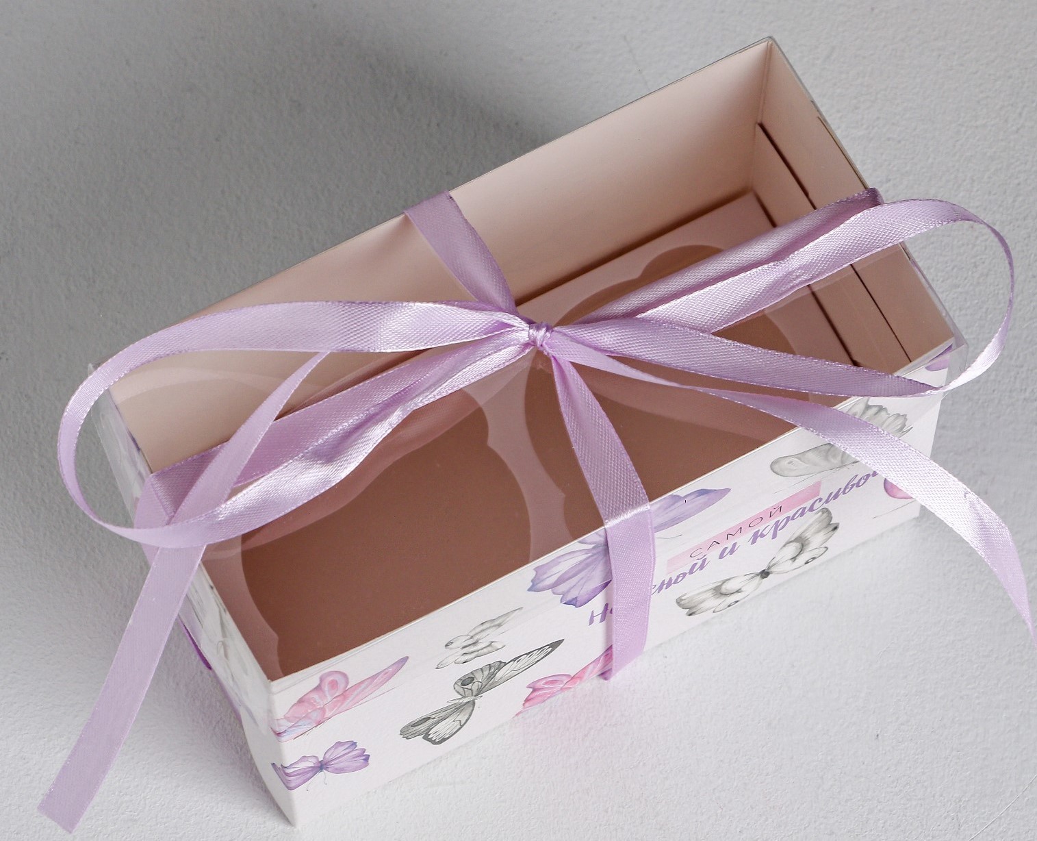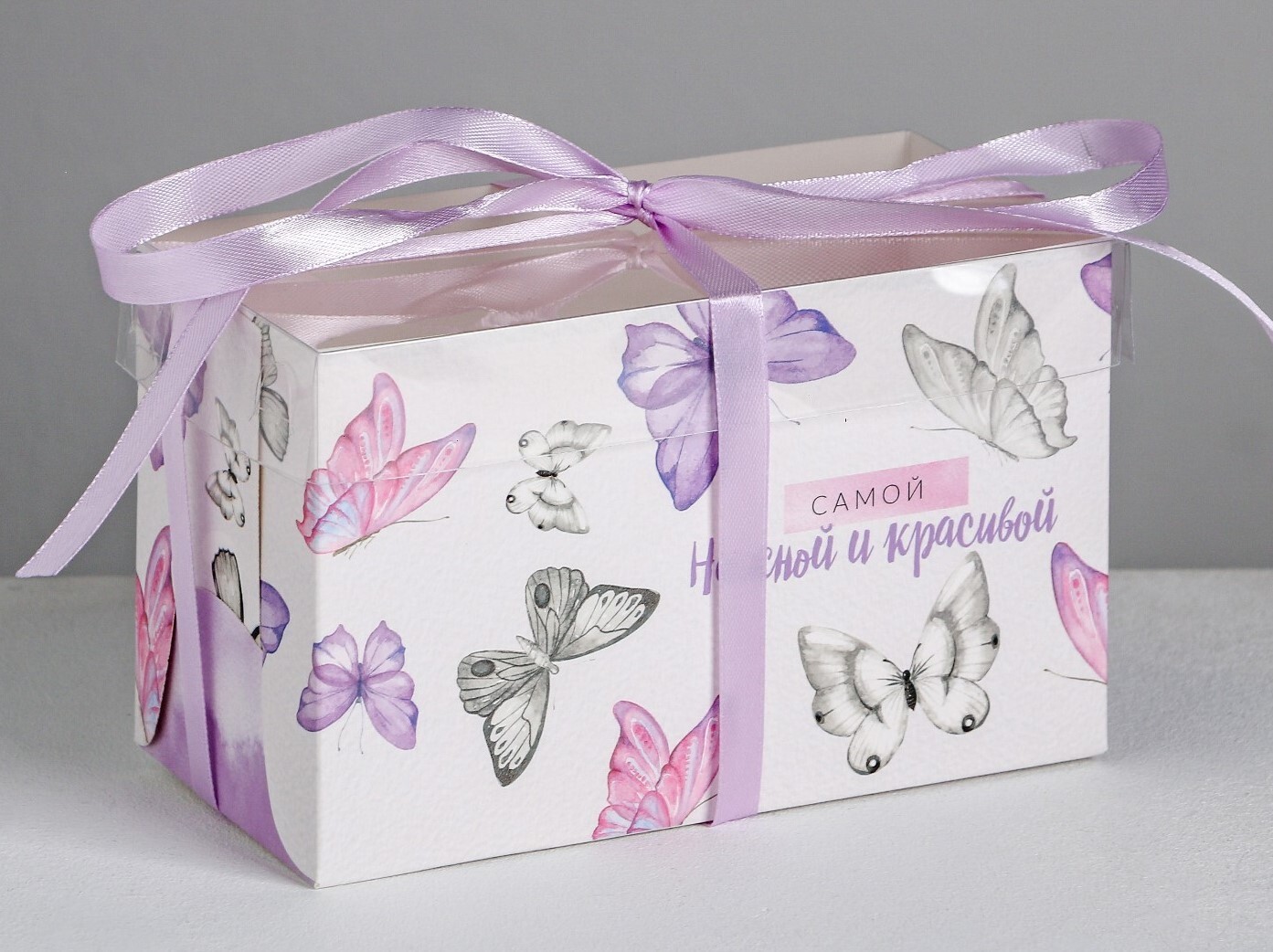 !09 Коробка (набор 3 штуки) на 2 капкейка «Самой нежной и красивой», 16 × 8 × 10 см.
