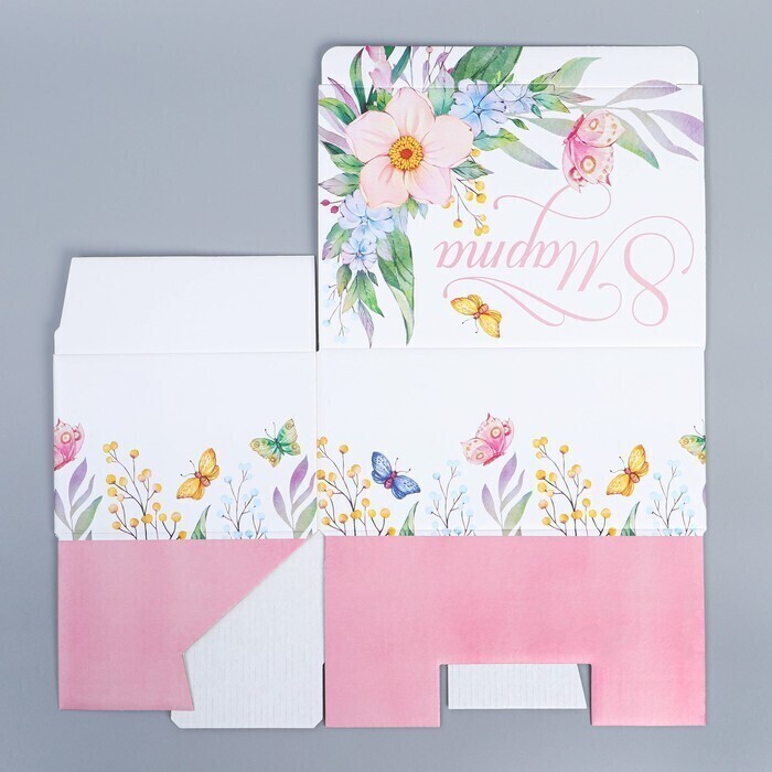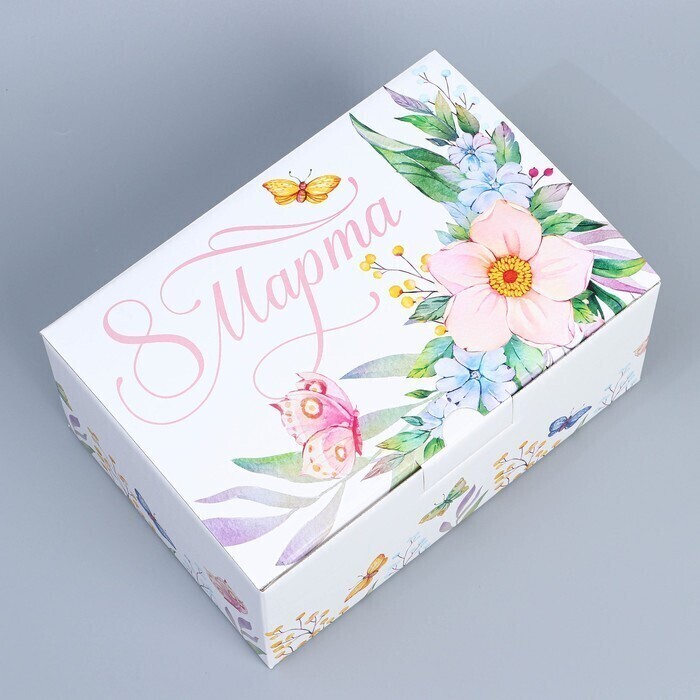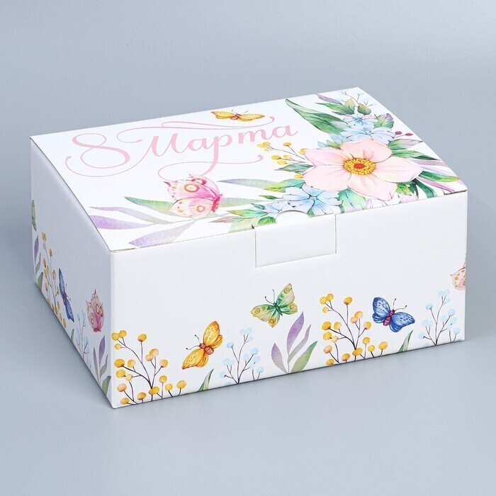 !09 Коробка-пенал (набор 3 штуки) сборная «С 8 марта» 20 х 15 х 10 см.