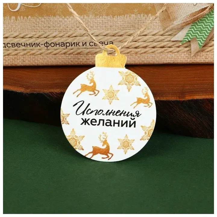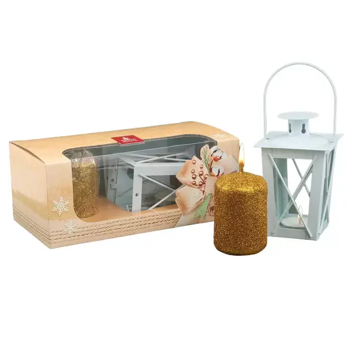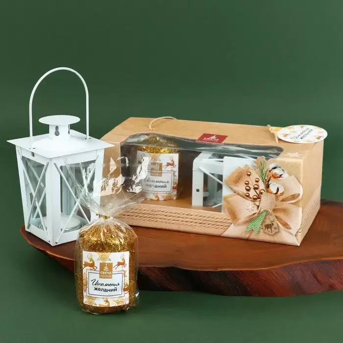 !09 Новогодний набор из 3-х предметов: Cвеча-столбик, фонарик «Исполнения желаний», чайная свеча