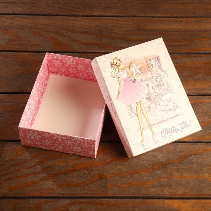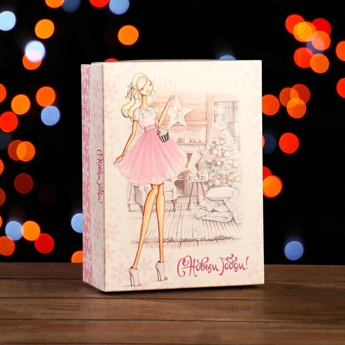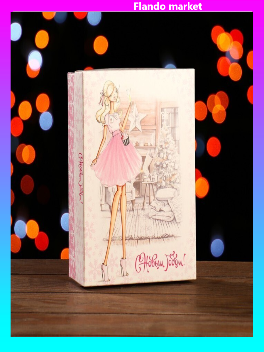 !09 Коробка (набор 4 штуки) сборная крышка-дно без окна, "Женский Новый год", 16,5 х 12,5 х 5,2 см