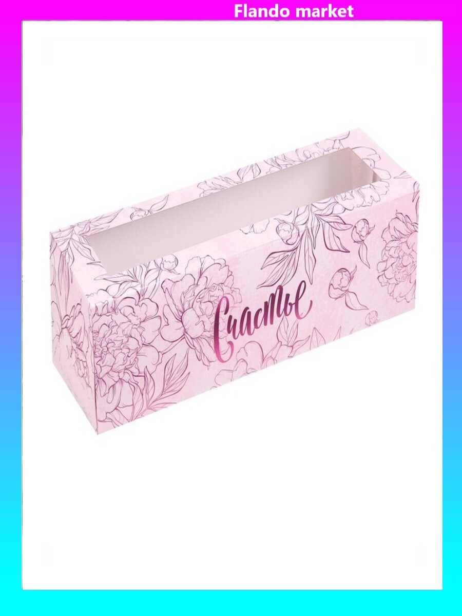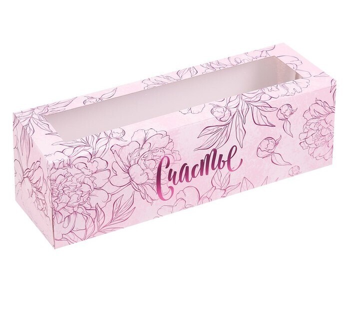 !09 Коробка складная для макарун (набор 5 штук) "Счастье" 18 х 5,5 х 5,5 см. кондитерская упаковка
