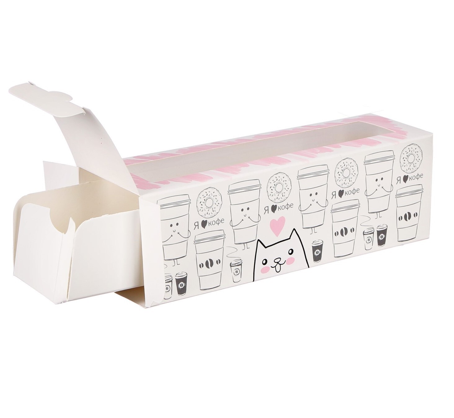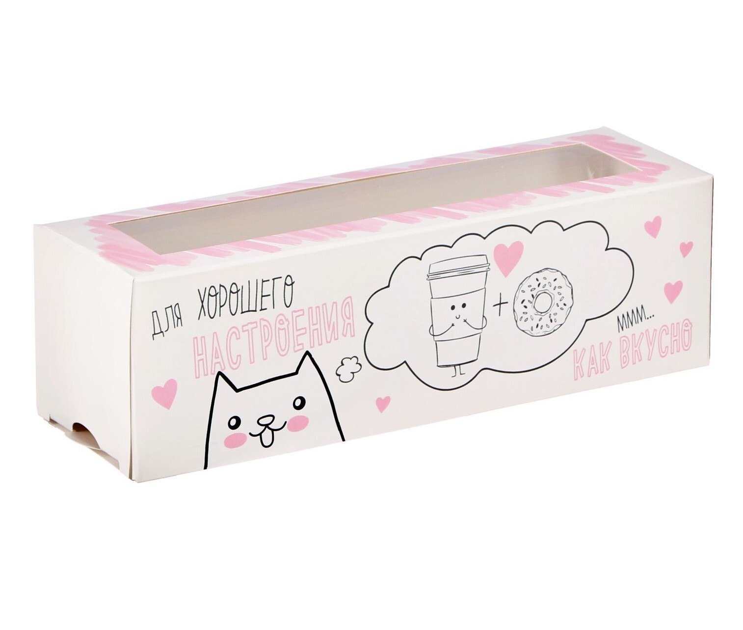 !09 Коробка складная для макарун (набор 4 штуки) "Для хорошего настроения" 18 х 5,5 х 5,5 см. кондитерская упаковка