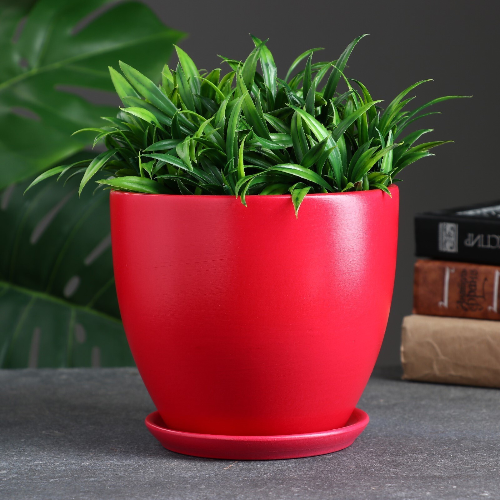 !09 Горшок для цветов «Колор гейм», керамический, с поддоном, 1.4 л, красный