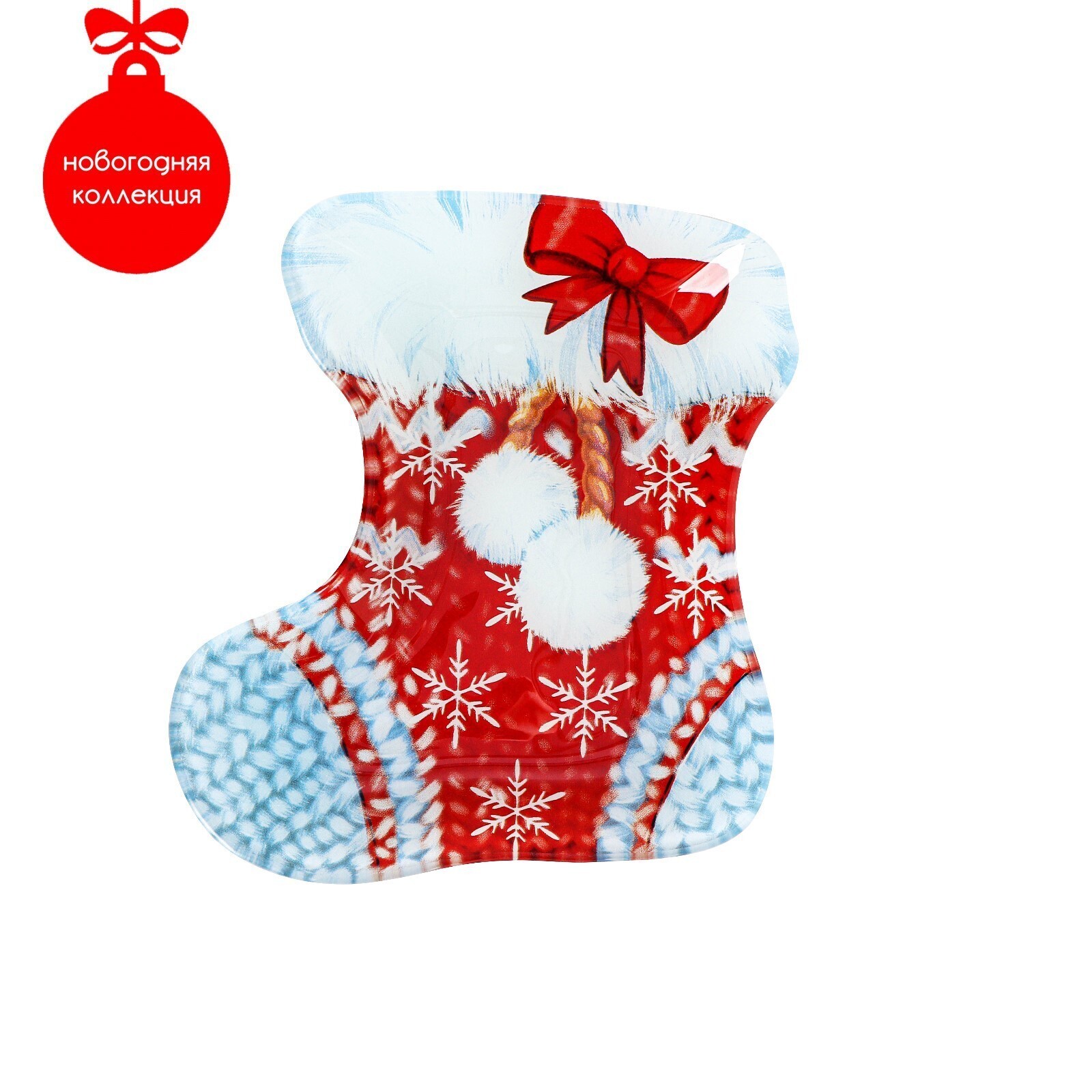 !09 Набор 2 штуки - Блюдо стеклянное сервировочное «Сапожок. Бубенчики», 16×14 см