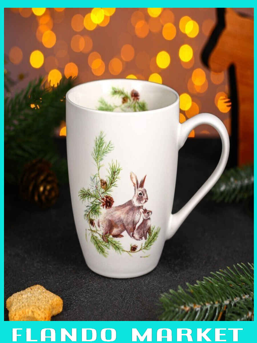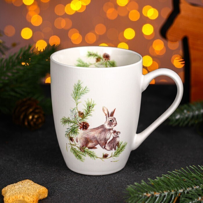 !09 Кружка «Новогоднее вдохновение. Зайка и зайчонок», 350 мл, матовая