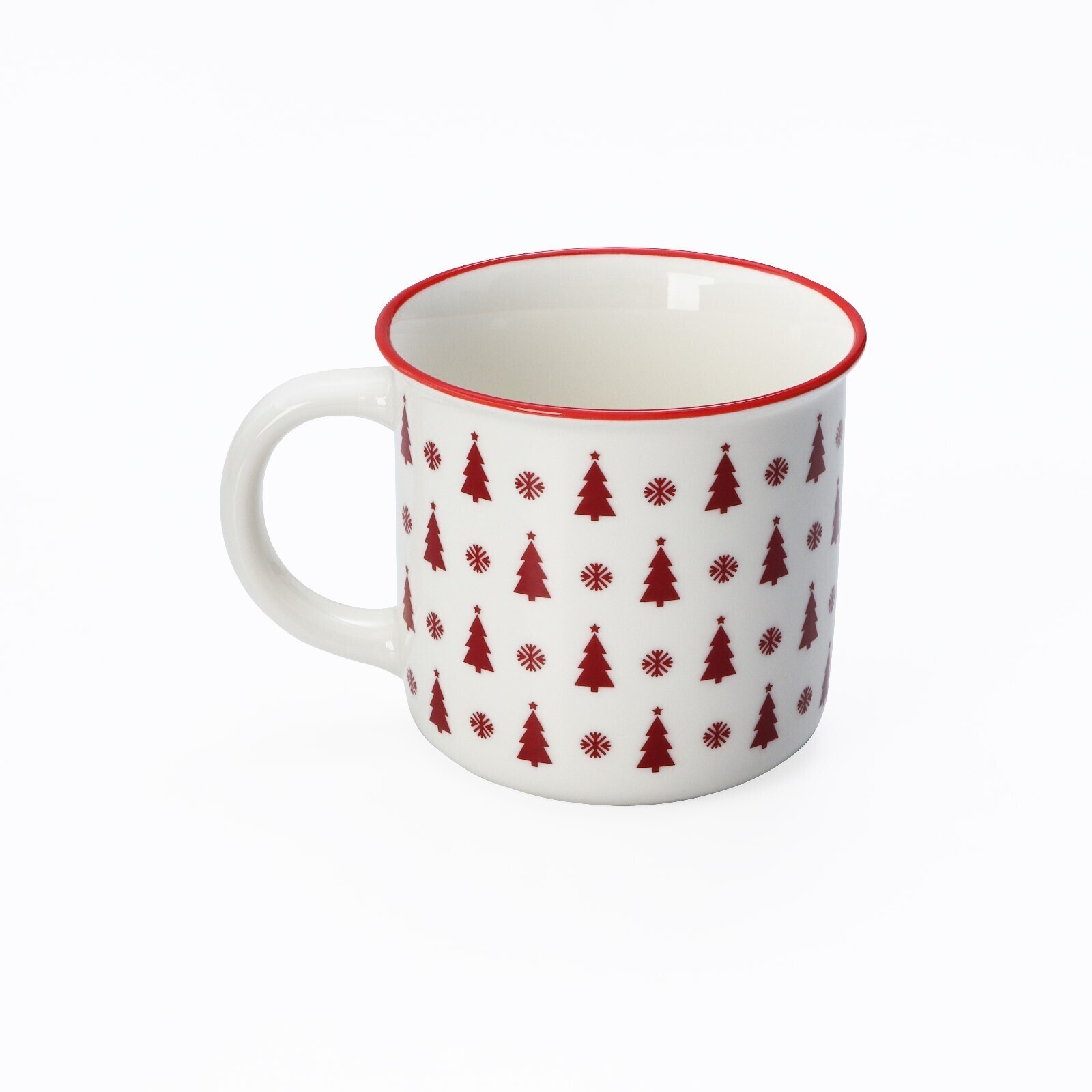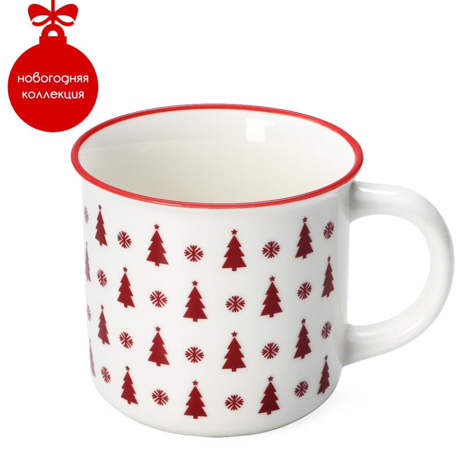 !09 Кружка новогодняя «Ёлочки», 380 мл, для чая, фарфор, 13×10×8,7 см, белая