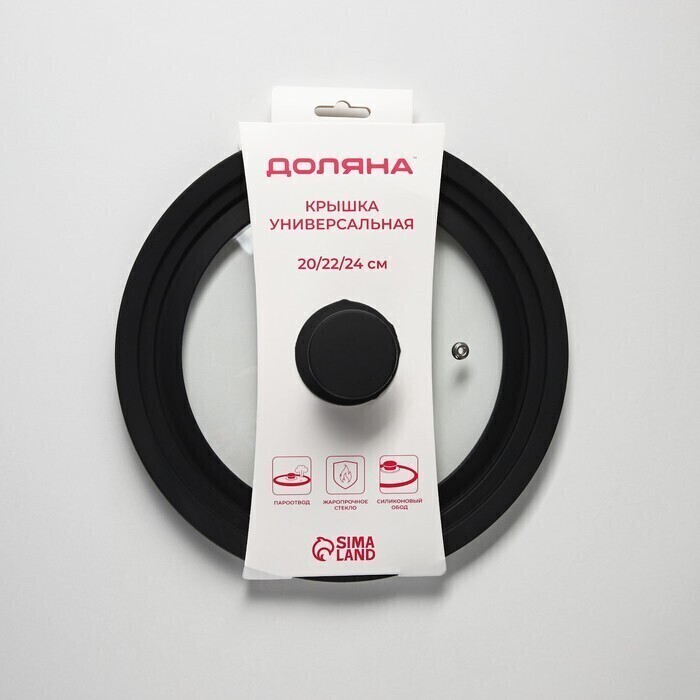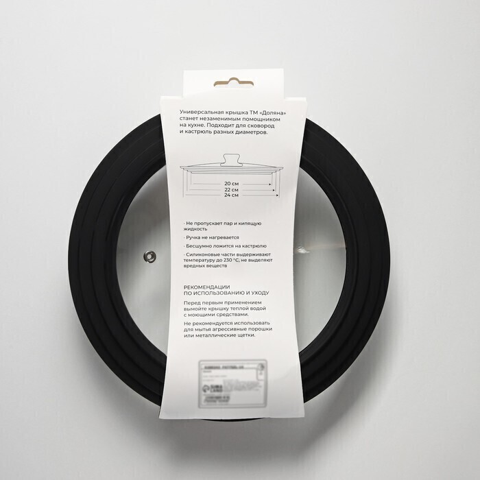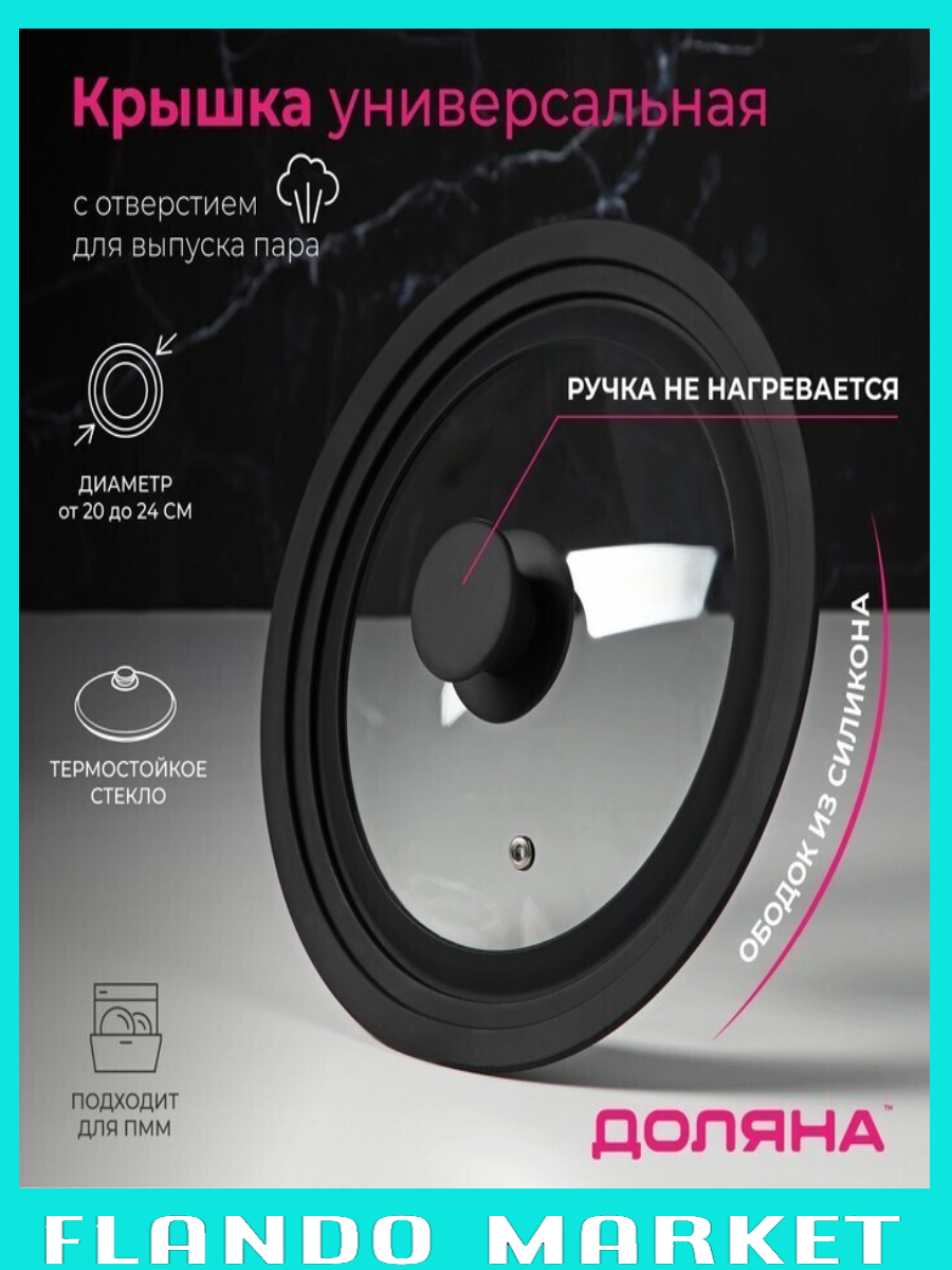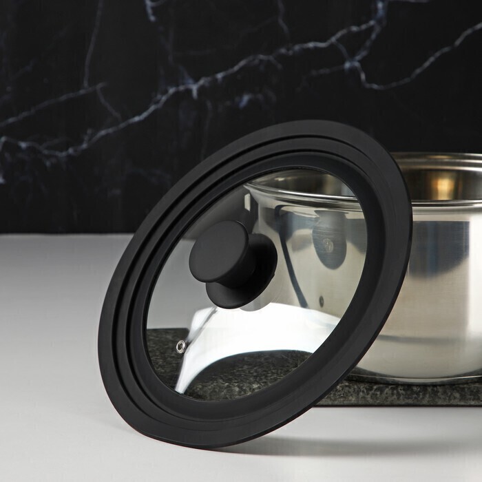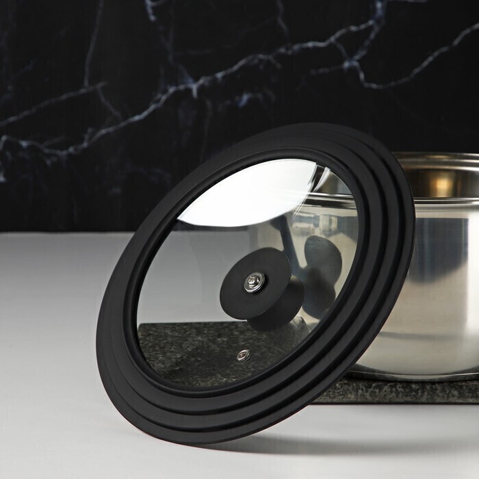!09 Крышка для сковороды и кастрюли стеклянная, универсальная, с силиконовым ободком и ручкой, d=20/22/24 см, цвет чёрный