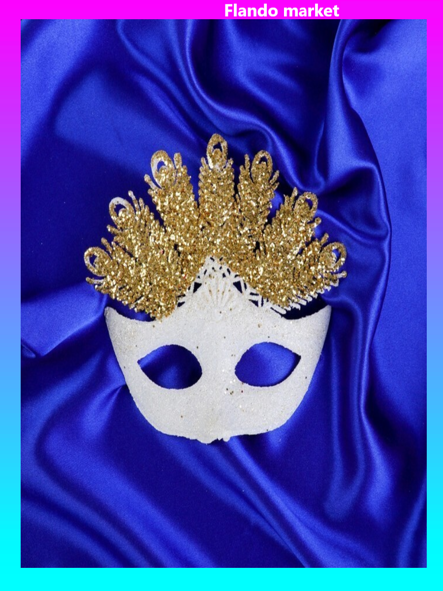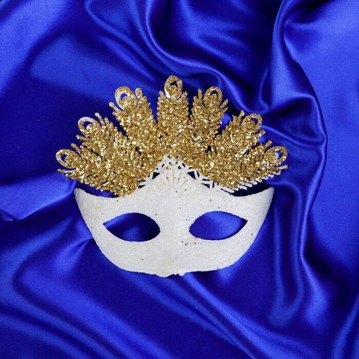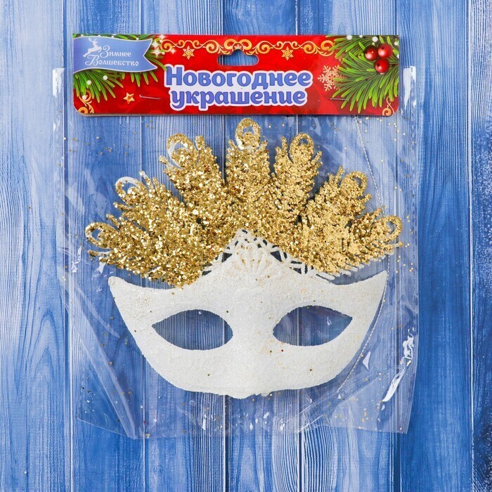 !09 Набор елочных украшений 3 штуки "Карнавальная маска" 14,5х13 см. цвет белый с золотом