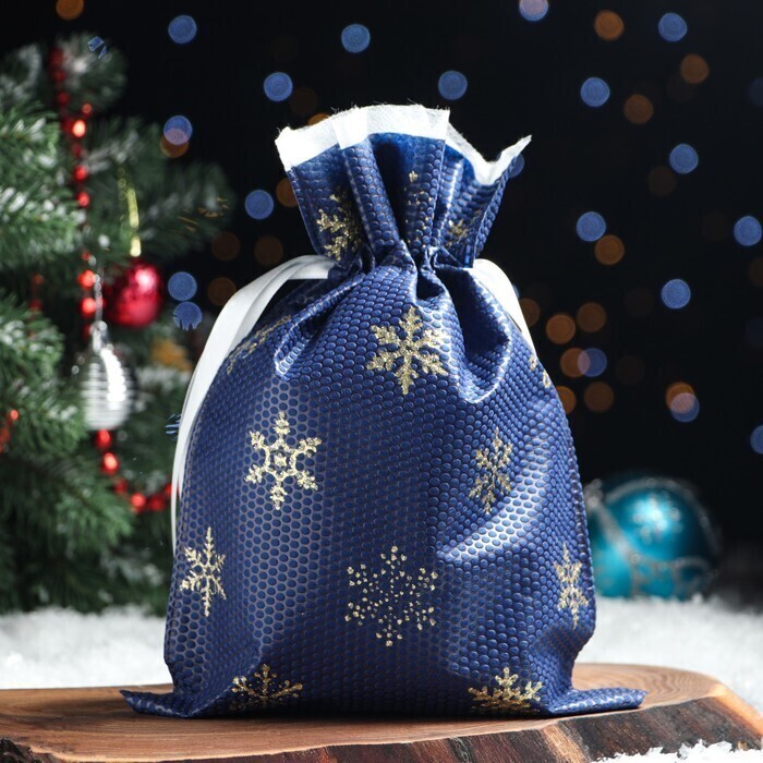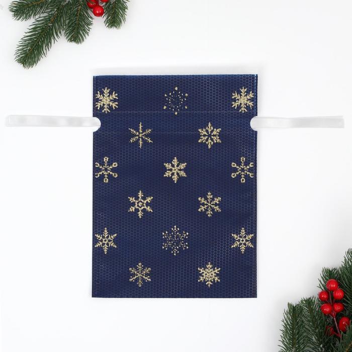 !09 Мешок подарочный (набор 2 штуки) "Золотые снежинки", 22 x 31 см.