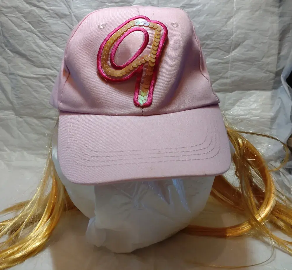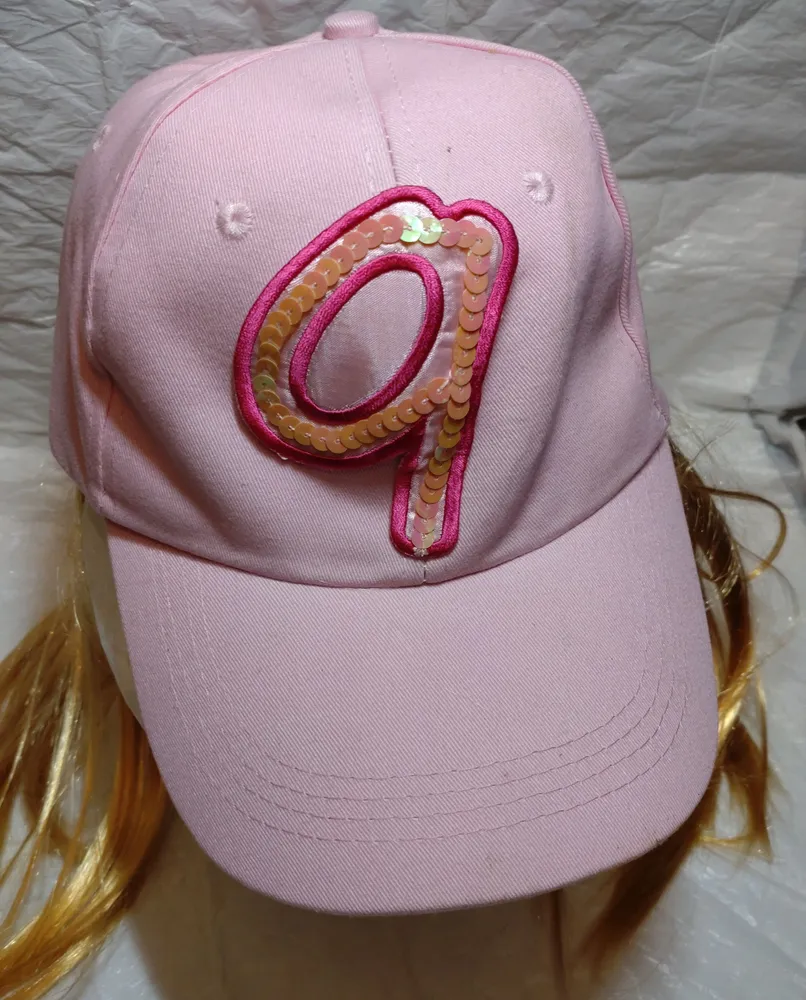 !09 Кепка карнавальная (набор 2 штуки) с париком/Бейсболка . Девятка Цвет розовый