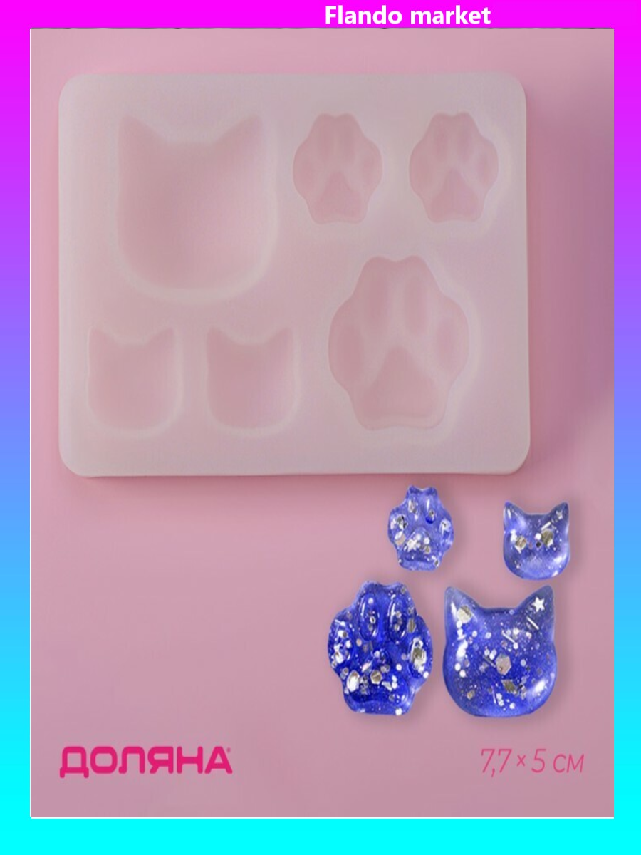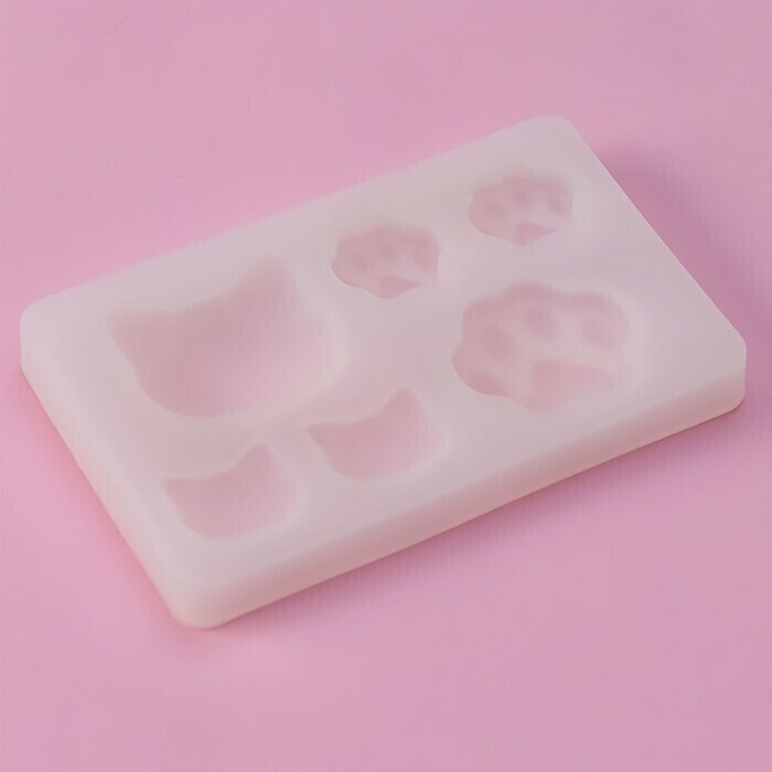 !09 Молд «Котик», силикон, 7,7×5×0,7 см, 6 ячеек, цвет прозрачный