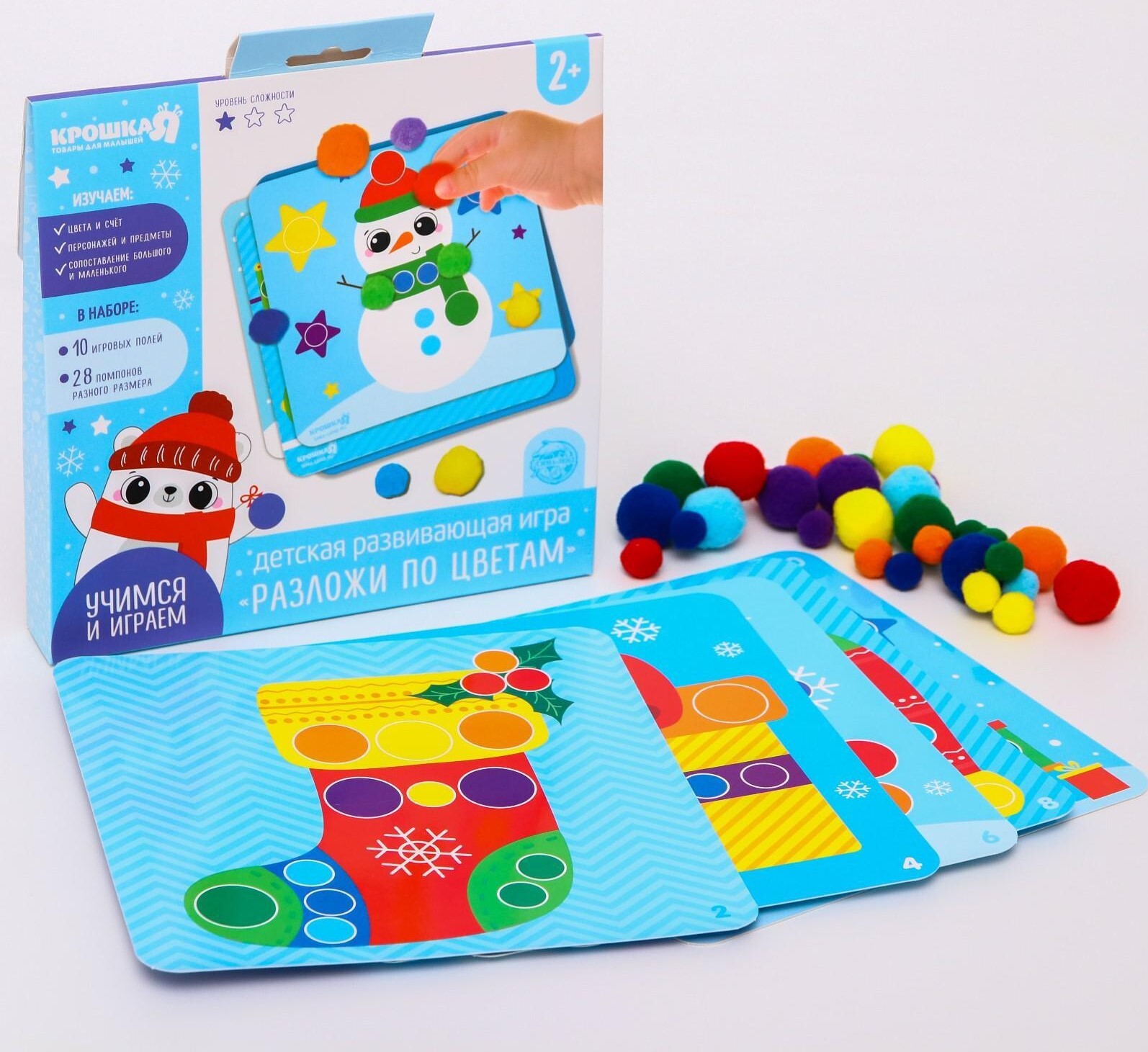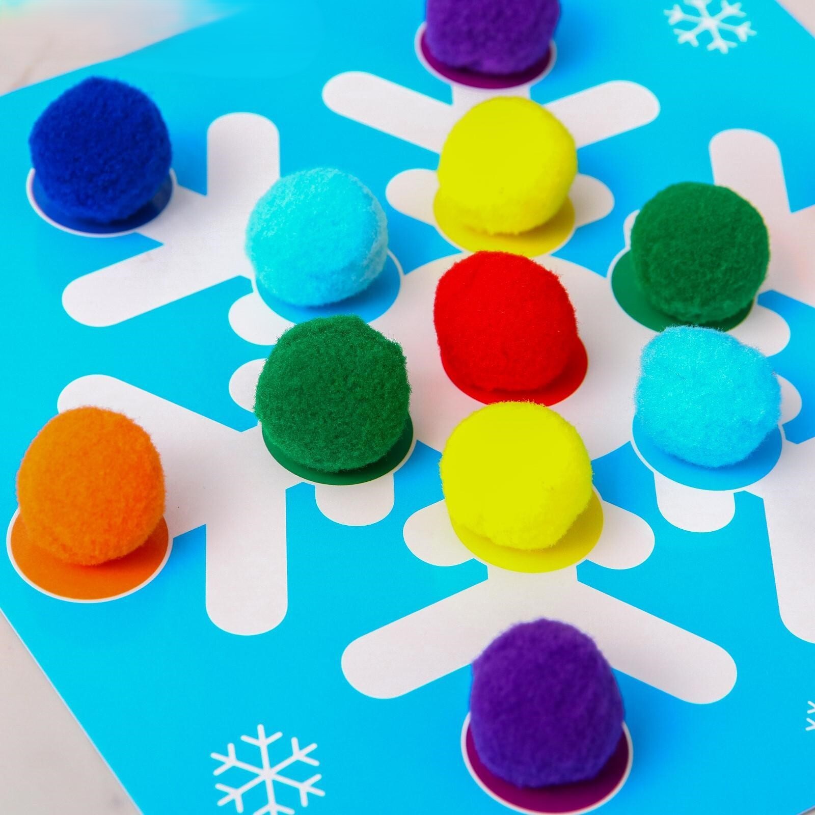 !09 Развивающая игра с помпошками "Разложи по цветам. Зимняя сказка"
