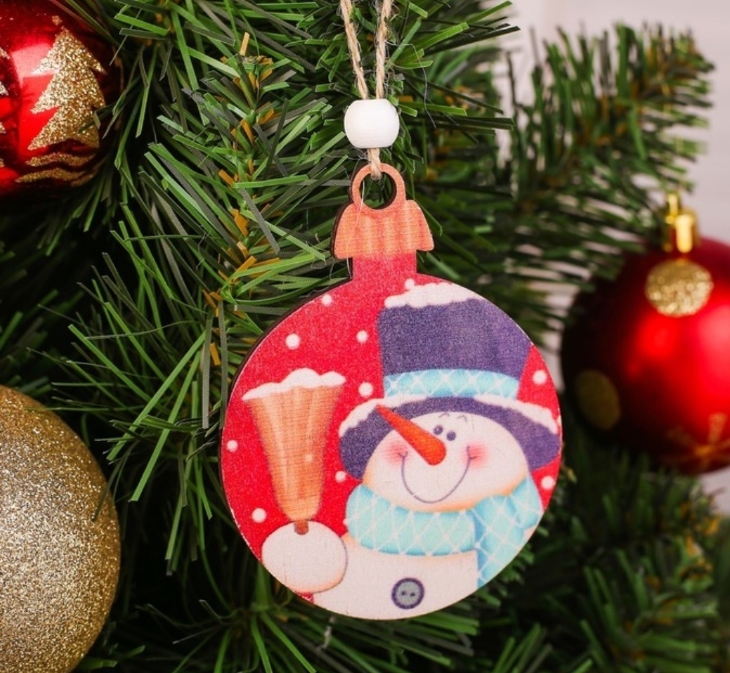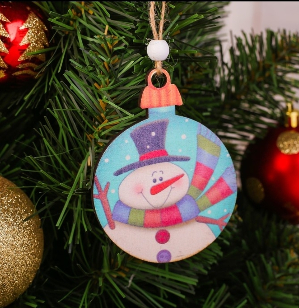 !09 Набор елочных украшений 7 штук: Подвеска 6 штук "Снеговики" дизайн микс + Снежинка "Снеговик" 9 см.
