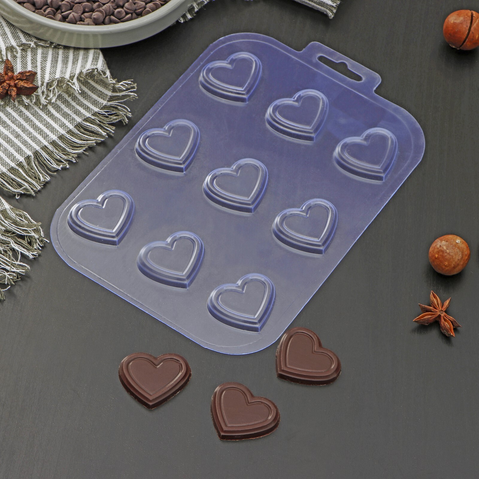 !09 Набор 2 штуки - Форма для шоколада и конфет «9 сердечек», 3,6×3,3×0,6 см, цвет прозрачный