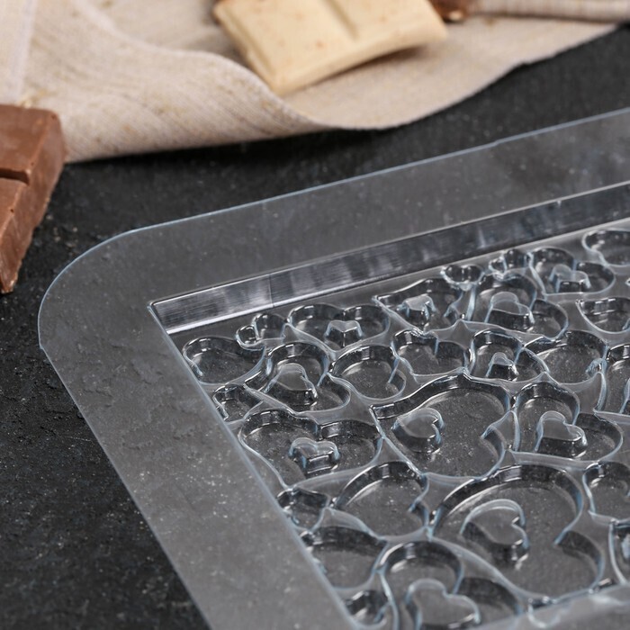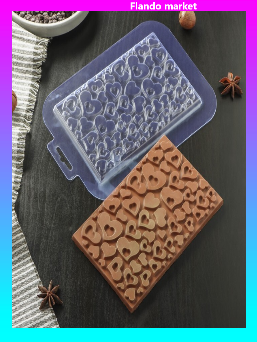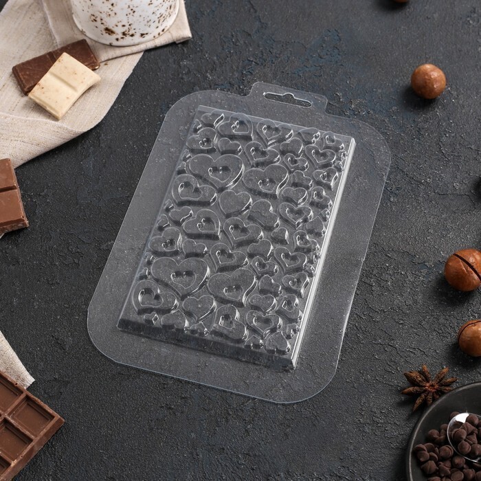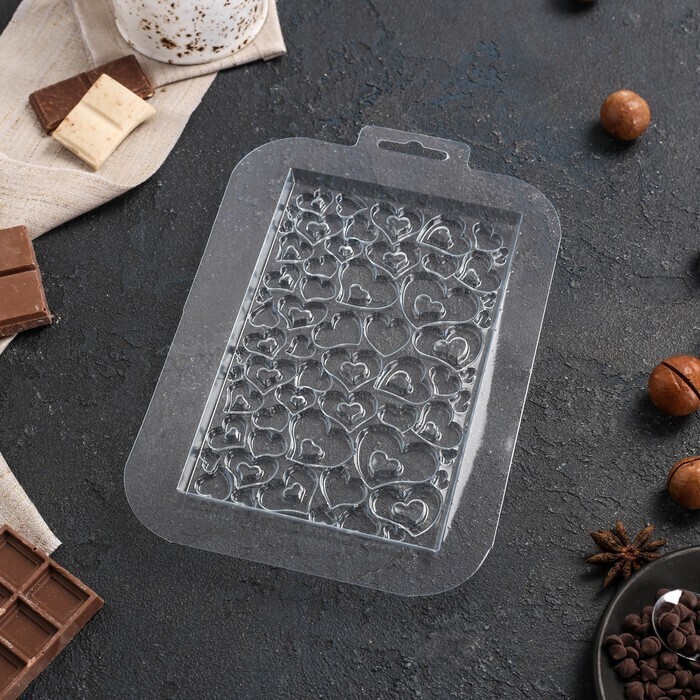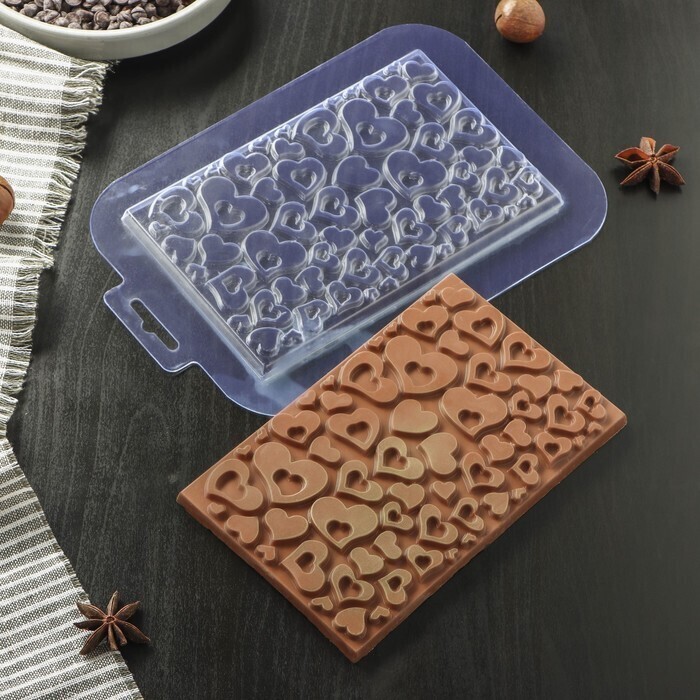 !09 НАБОР 2 ШТУКИ - Форма для шоколада «Плитка в сердечках», пластик, прозрачная