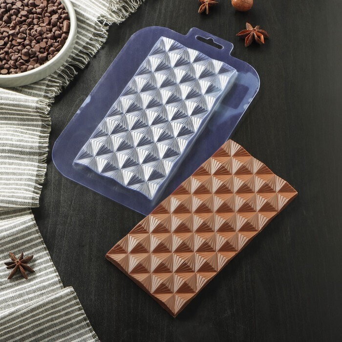 !09 НАБОР 3 ШТУКИ -Форма для шоколада и конфет «Плитка Инфлексия», 17×8,5×1 см, цвет прозрачный