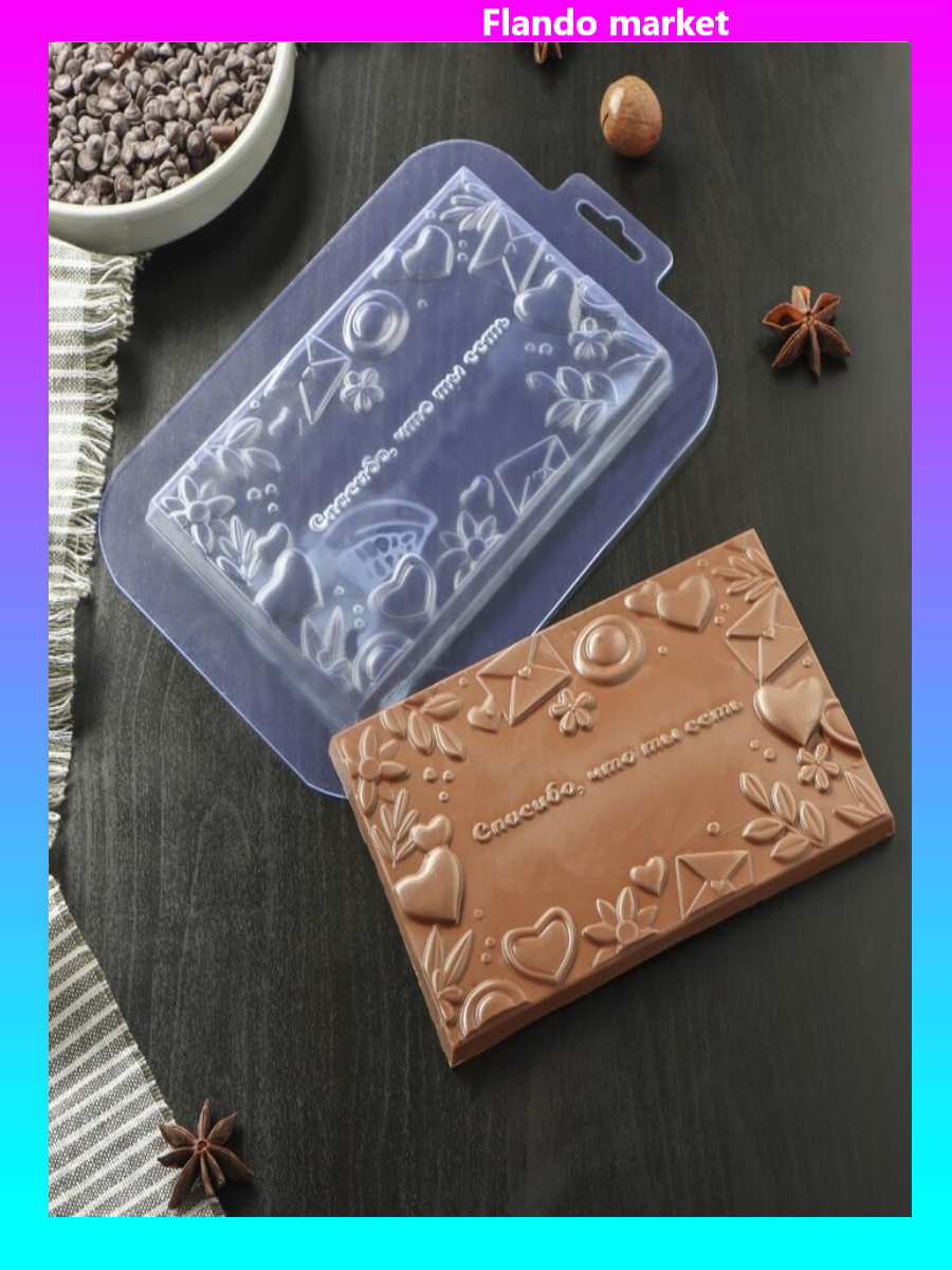 !09 НАБОР 2 ШТУКИ - Форма для шоколада и конфет «Спасибо, что ты есть», 16×10×1,1 см, цвет прозрачный