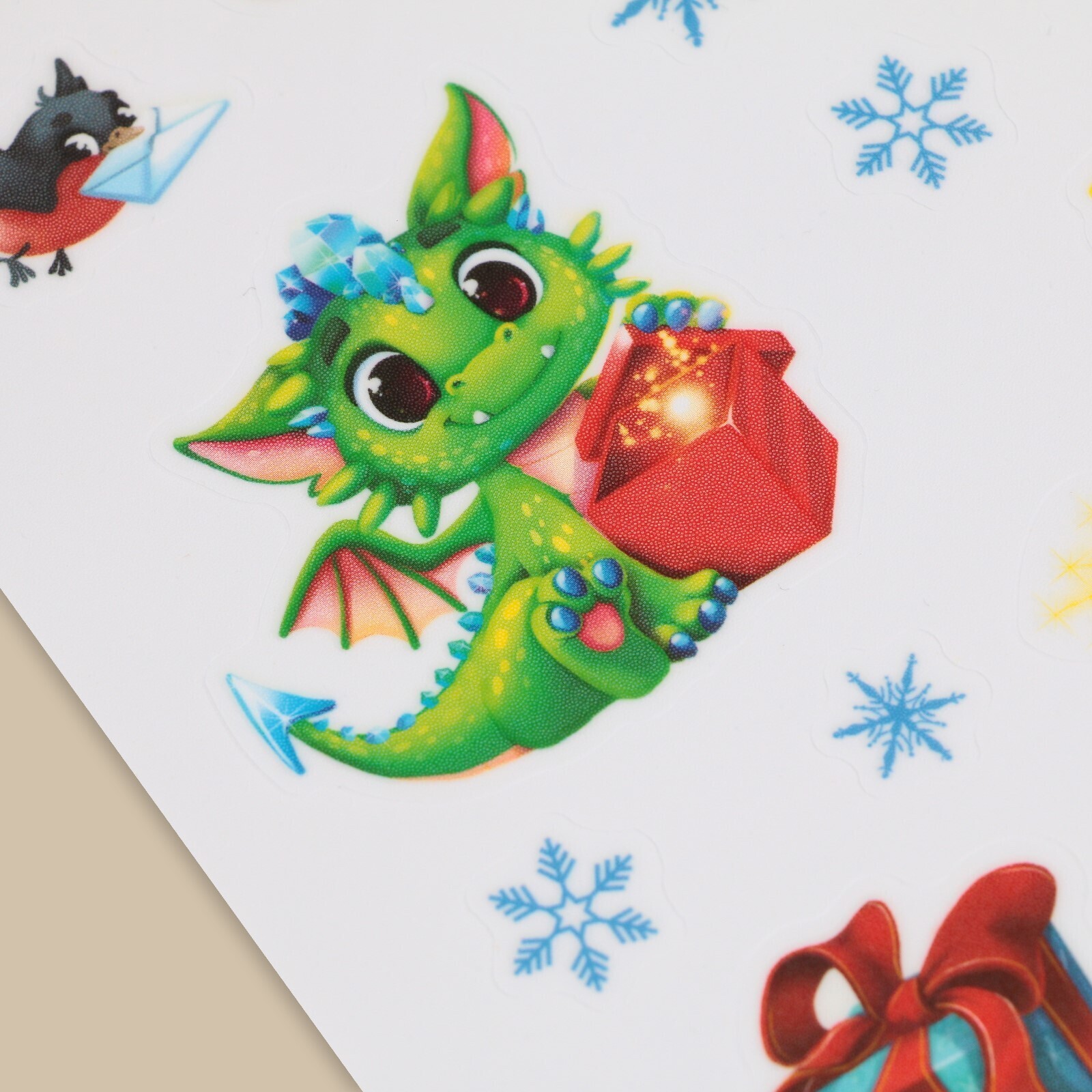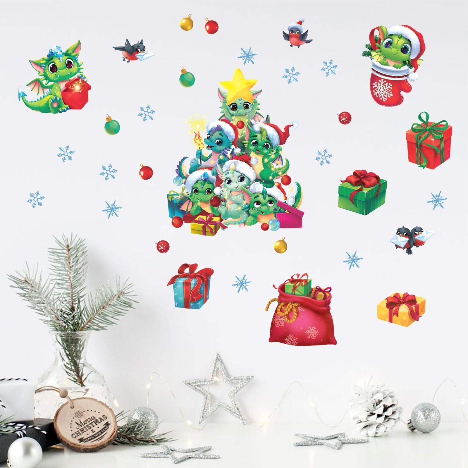 !09 НАБОР 3 ШТУКИ - Интерьерная наклейка со светящимся слоем «Драконы», 21 × 29.7 см.