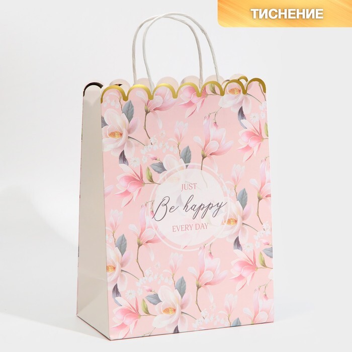 !09 НАБОР 2 ШТУКИ - Пакет подарочный крафтовый, упаковка, «Be happy», 23×30×12 см.